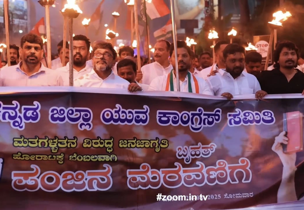 ದ.ಕ ಜಿಲ್ಲಾ ಯುವ ಕಾಂಗ್ರೆಸ್ ವತಿಯಿಂದ ಮತಗಳ್ಳತನ ವಿರುದ್ಧ ಪಂಜಿನ ಮೆರವಣಿಗೆ
