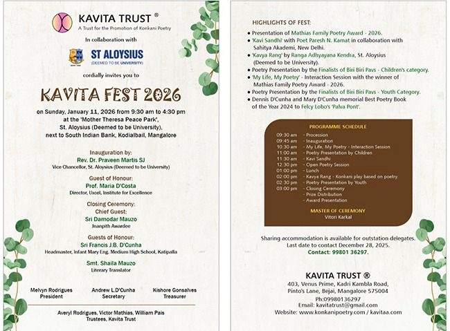 ಮಂಗಳೂರು: ನಾಳೆ ಕವಿತಾ ಟ್ರಸ್ಟ್ನ ಇಪ್ಪತ್ತನೇ ಕವಿತಾ ಫೆಸ್ತ್ ಸಂಭ್ರಮ