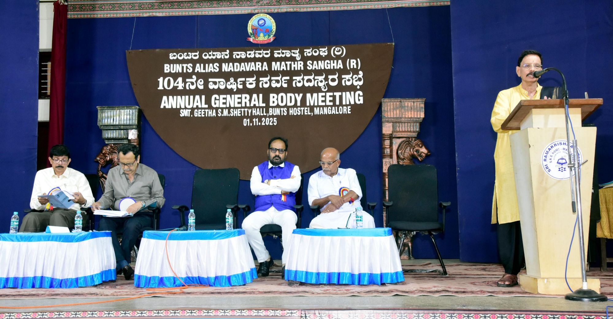 ಬಂಟ್ಸ್ ಹಾಸ್ಟೇಲ್ ಬಳಿ ಇರುವ ಶ್ರೀಮತಿ ಗೀತಾ ಎಸ್ ಎಮ್ ಶೆಟ್ಟಿ ಸಭಾಭವನದಲ್ಲಿ ನಡೆದ 104 ನೇ ವಾರ್ಷಿಕ ಸರ್ವ ಸದಸ್ಯರ ಸಭೆಯಲ್ಲಿ ಅಧ್ಯಕ್ಷತೆ ವಹಿಸಿ ಮಾತನಾಡಿದರು.