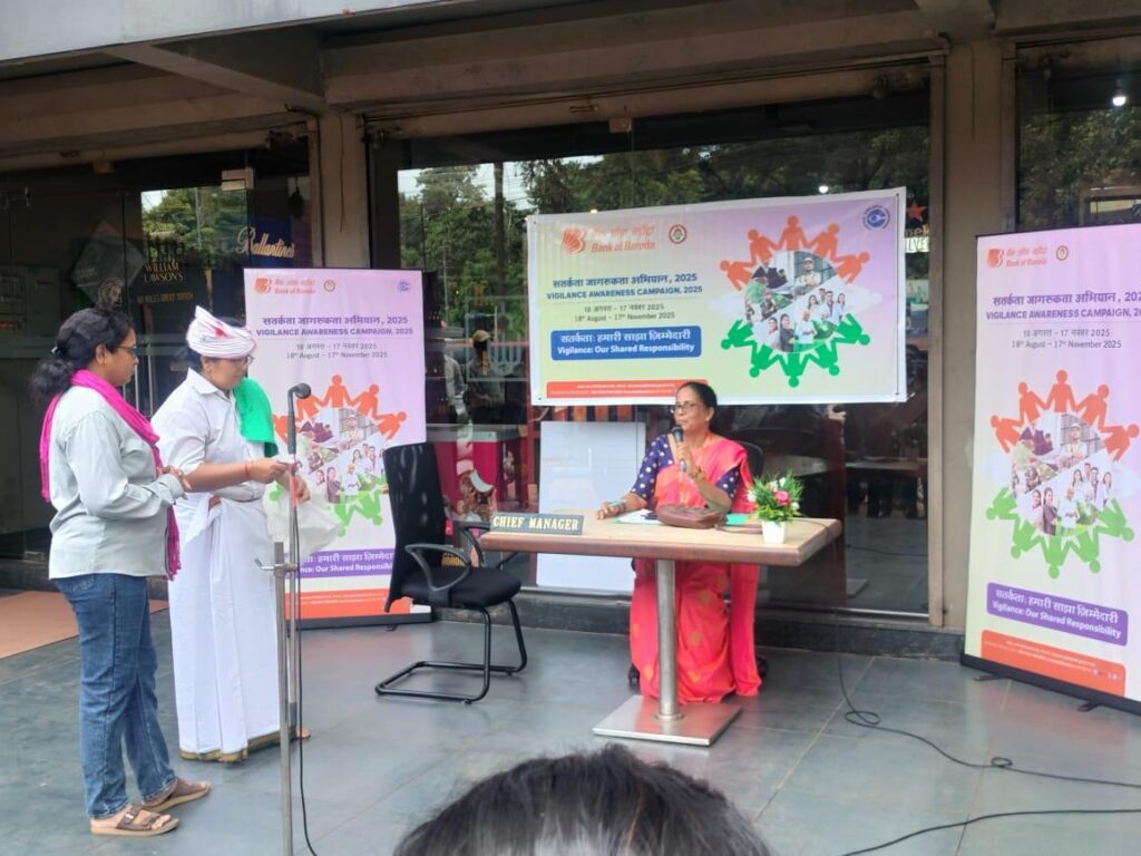 ನೀರ್ ಮಾರ್ಗ್ ಶಾಖೆಯಲ್ಲಿ, ಹಿರಿಯ ಶಾಖಾ ವ್ಯವಸ್ಥಾಪಕರಾದ ಶ್ರೀಮತಿ ನಾಗಲಕ್ಷ್ಮಿ ಅವರು ವಿಚಕ್ಷಣಾ ಜಾಗೃತಿ ಮತ್ತು ಭ್ರಷ್ಟಾಚಾರ ಮುಕ್ತ ಸಮಾಜವನ್ನು ನಿರ್ಮಿಸುವಲ್ಲಿ ಸಾಮೂಹಿಕ ಜವಾಬ್ದಾರಿಯ ಪ್ರಾಮುಖ್ಯತೆಯ ಬಗ್ಗೆ ತಮ್ಮ ಆಲೋಚನೆಗಳನ್ನು ಹಂಚಿಕೊಂಡಿದ್ದಾರೆ.