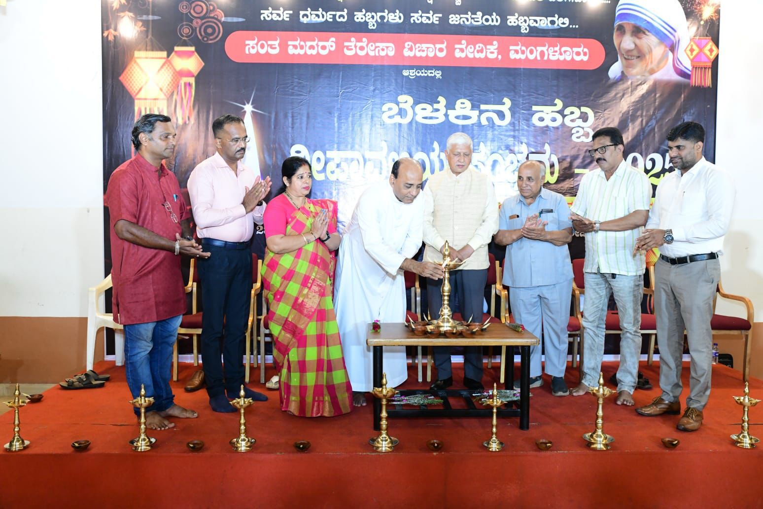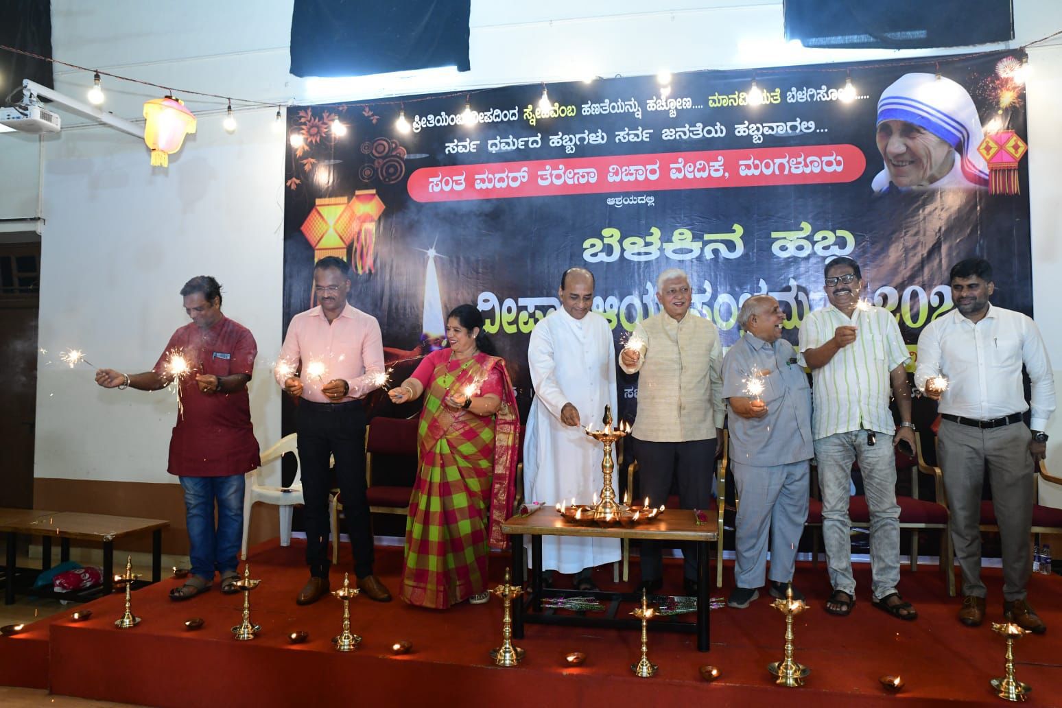 ಸಂತಾ ಮದರ್ ತೆರೇಸಾ ವಿಚಾರ ವೇದಿಕೆ, ಮಂಗಳೂರು ಇವರ ಆಶ್ರಯದಲ್ಲಿ,ಬೆಳಕಿನ ಹಬ್ಬ ದೀಪಾವಳಿಯ ಸಂಭ್ರಮ 2025 ಹಬ್ಬವನ್ನು ಸಂತ ಅಲೋಶಿಯಸ್ ಕಾಲೇಜಿನ ಸಹೋದಯ ಸಭಾಂಗಣದಲ್ಲಿ ಪಟಾಕಿ ಸಿಡಿತ ಮತ್ತು ದೀಪ ಬೆಳಗುವ ಮೂಲಕ ಕಾರ್ಯಕ್ರಮದ ಚಾಲನೆ ನೀಡಲಾಯಿತು