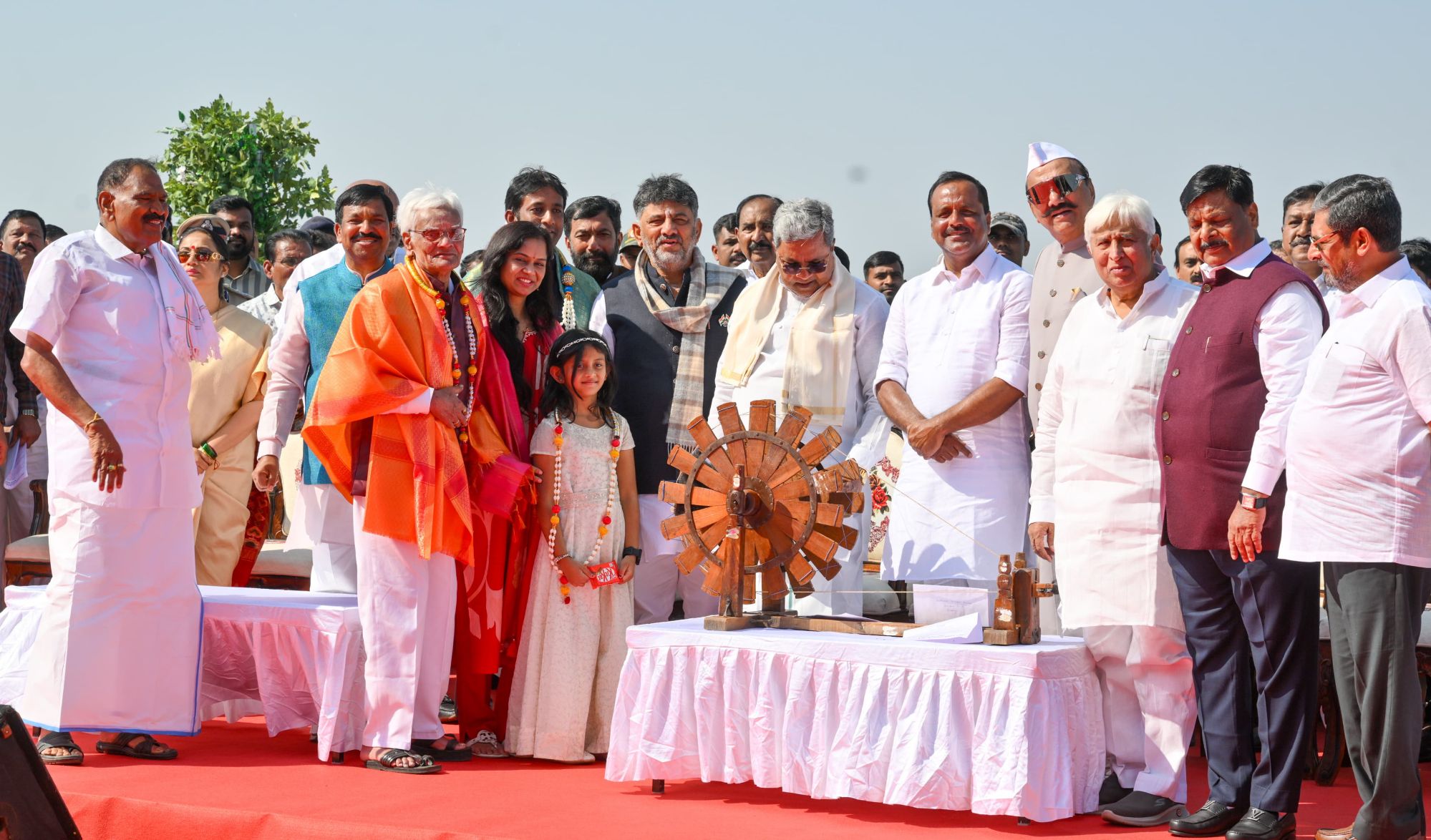 ಅವರು ಇಂದು *ಬೆಳಗಾವಿಯ ಸುವರ್ಣ ಸೌಧದ ಪಶ್ಚಿಮ ದಿಕ್ಕಿನ ಮೆಟ್ಟಿಲುಗಳ ಮೇಲೆ ಜಗತ್ತಿನ ಎರಡನೇ ಅತೀ ದೊಡ್ಡ ಖಾದಿ ತ್ರಿವರ್ಣ ಧ್ವಜವನ್ನು ಅನಾವರಣ* ಮಾಡಿ ಕಾರ್ಯಕ್ರಮ ವನ್ನು ಉದ್ದೇಶಿಸಿ ಮಾತನಾಡಿದರು