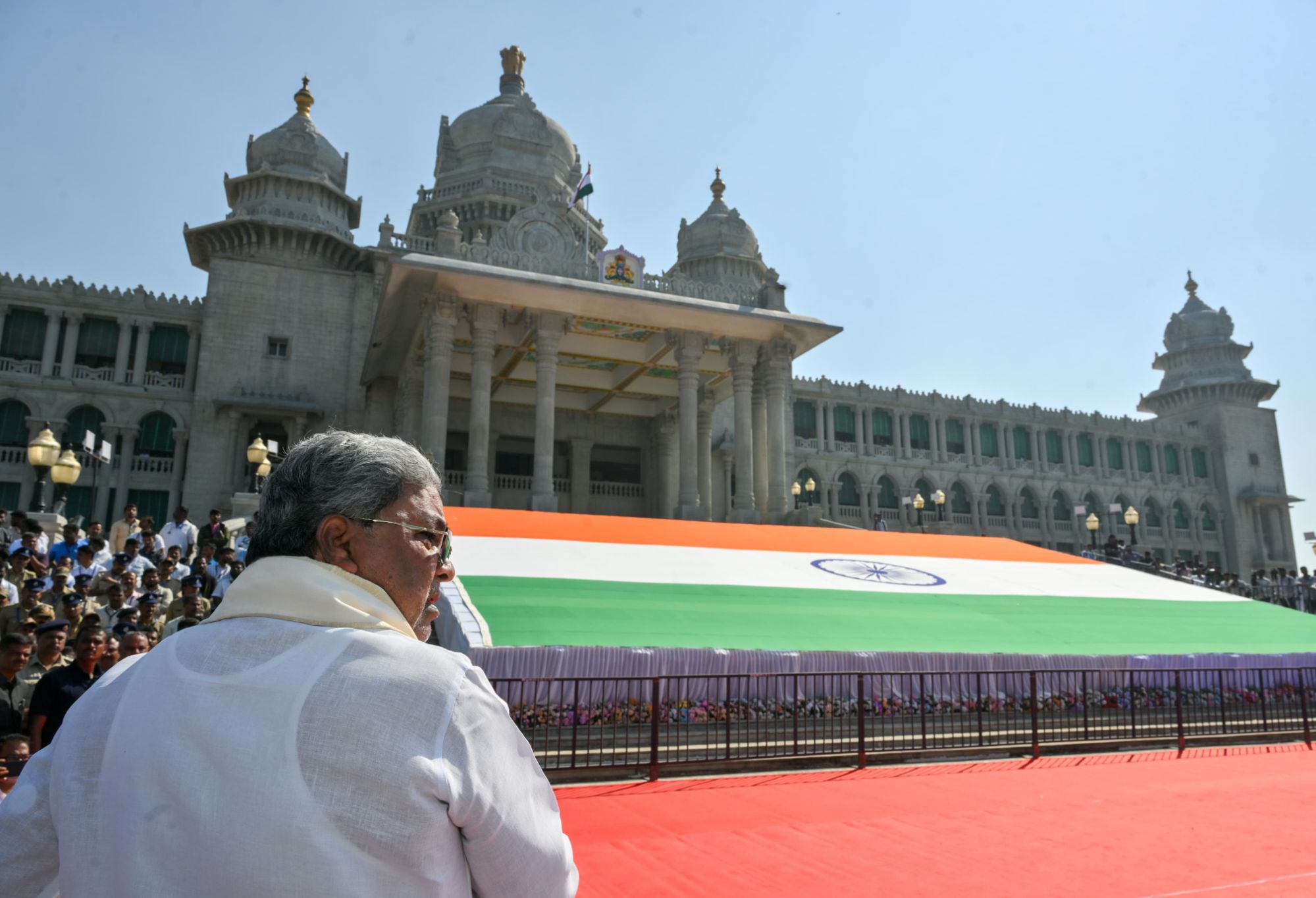 ಇಂದು ಬೆಳಗಾವಿಯ ಸುವರ್ಣಸೌಧದ ಪಶ್ಚಿಮ ದಿಕ್ಕಿನ ಮೆಟ್ಟಿಲುಗಳ ಮೇಲೆ ಜಗತ್ತಿನ ಎರಡನೇ ಅತಿ ದೊಡ್ಡ ಖಾದಿ ತ್ರಿವರ್ಣ ಧ್ವಜವನ್ನು ಅನಾವರಣಗೊಳಿಸಲಾಗಿದ್ದು, ಇದಕ್ಕೆ ಕಾರಣರಾದ ವಿಧಾನಸಭಾ ಸಭಾಧ್ಯಕ್ಷರಾದ ಯು.ಟಿ.ಖಾದರ್ ಅವರಿಗೆ ಮತ್ತು ಕಲ್ಬುರ್ಗಿ ಜಿಲ್ಲೆಯ ಕಮಲಾಪುರದ ವಿನೋದ್ ಕುಮಾರ್ ರೇವಪ್ಪ ಬಮ್ಮಣ್ಣ ಅವರ ಕುಟುಂಬಸ್ಥರಿಗೂ ಸರ್ಕಾರದಿಂದ ಮುಖ್ಯಮಂತ್ರಿಗಳು ಅಭಿನಂದಿಸಿದರು.