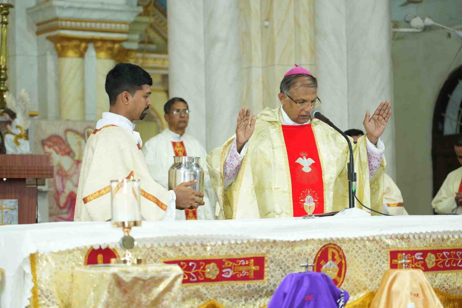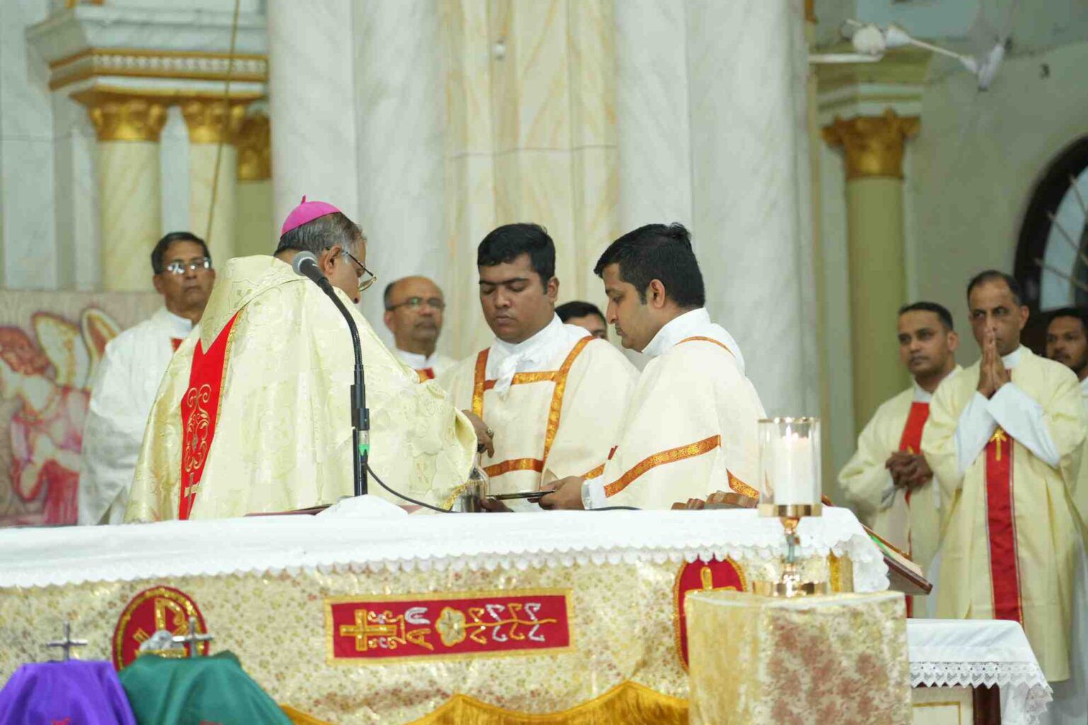 ಬಲಿಪೂಜೆಯಲ್ಲಿ ಮಂಗಳೂರು ಧರ್ಮಕ್ಷೇತ್ರದ ಶ್ರೇಷ್ಠಗುರು ವಂ. ಮ್ಯಾಕ್ಸಿಮ್ ಎಲ್. ನೊರೊನ್ಹಾ, ಚಾನ್ಸೆಲರ್ ಅತಿ ವಂ. ವಿಕ್ಟರ್ ಜಾರ್ಜ್ ಡಿಸೋಜಾ, ಪ್ರೊಕ್ಯುರೇಟರ್ ಅತಿ ವಂ. ಜಗದೀಶ್ ಪಿಂಟೊ, ಧಾರ್ಮಿಕರ ಎಪಿಸ್ಕೋಪಲ್ ವಿಕಾರ್ ಅತಿ ವಂ. ಡೇನಿಯಲ್ ವೇಗಾಸ್ ಒ.ಪಿ., ಜುಡಿಷಿಯಲ್ ವಿಕಾರ್ ಅತಿ ವಂ. ನವೀನ್ ಪಿಂಟೊ ಮತ್ತು ರೊಸಾರಿಯೊ ಕ್ಯಾಥೆಡ್ರಲ್ನ ಪ್ರಧಾನ ಯಾಜಕರಾದ ವಂ. ವಲೇರಿಯನ್ ಡಿ ಸೋಜ ಅವರು ಸಹ- ಯಾಜಕರಾಗಿ ಪಾಲ್ಗೊಂಡಿದ್ದರು.