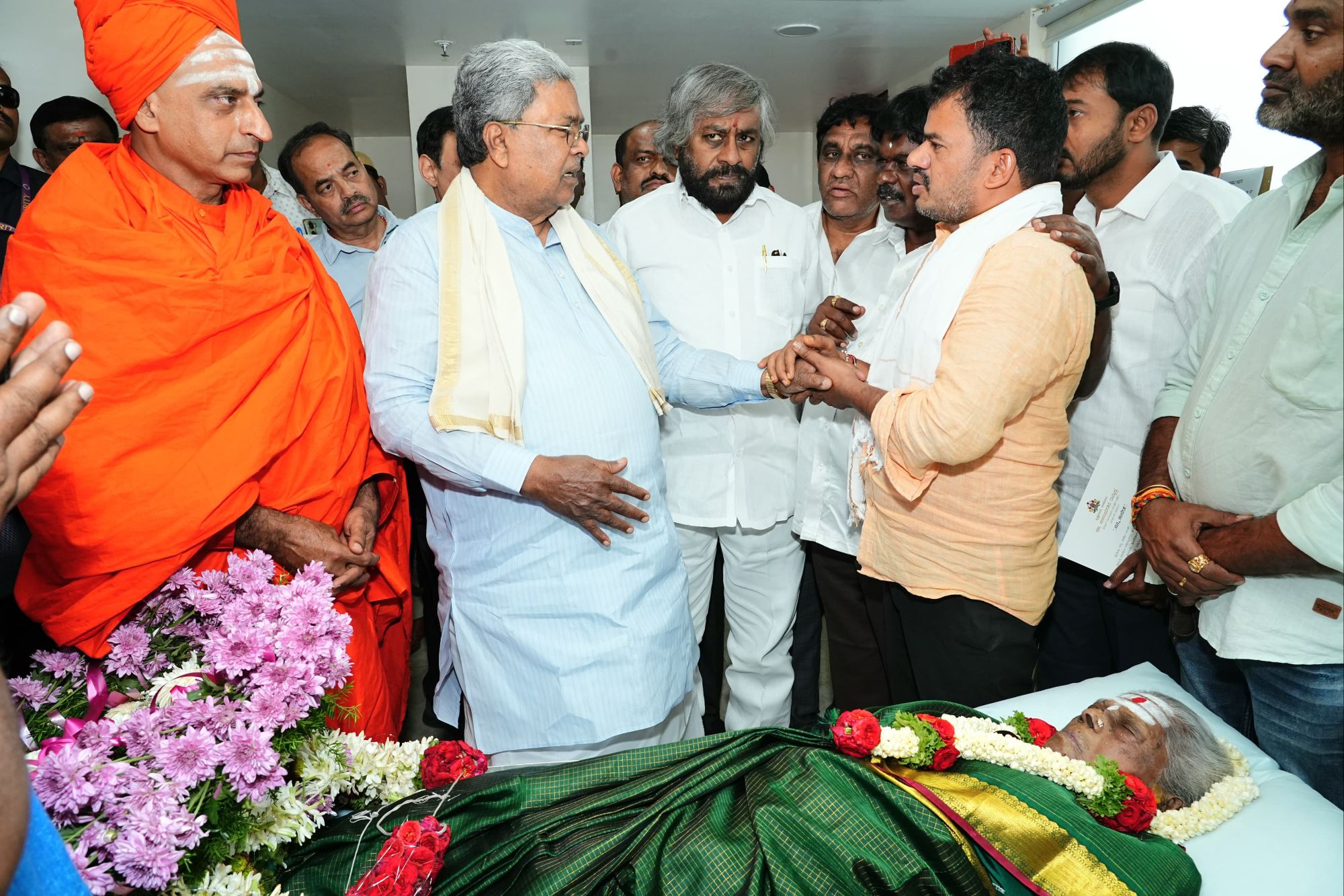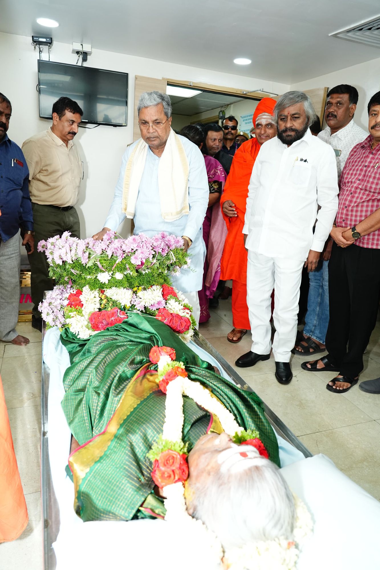 ಬೆಂಗಳೂರು, ನವೆಂಬರ್ 14: ಪದ್ಮಶ್ರೀ ಪುರಸ್ಕೃತೆ ಸಾಲು ಮರದ ತಿಮ್ಮಕ್ಕ ಅವರ ಅಂತ್ಯಕ್ರಿಯೆಯನ್ನು ಸಕಲ ಸರ್ಕಾರಿ ಗೌರವದೊಂದಿಗೆ ನಡೆಸಲಾಗುವುದು ಎಂದು ಮುಖ್ಯಮಂತ್ರಿ ಸಿದ್ದರಾಮಯ್ಯ ತಿಳಿಸಿದರು. ಅವರು ಇಂದು ವೃಕ್ಷಮಾತೆ ಸಾಲು ಮರದ ತಿಮ್ಮಕ್ಕ ಅವರ ಅಂತಿಮ ದರ್ಶನ ಪಡೆದ ನಂತರ ಮಾಧ್ಯಮದವರೊಂದಿಗೆ ಮಾತನಾಡಿದರು.