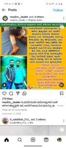 ಮೇಲಿನ ಘಟನೆಗೆ ಸಂಬಂಧಿಸಿದಂತೆ ಸಾಮಾಜಿಕ ಜಾಲತಾಣವಾದ INSTAGRAM ನಲ್ಲಿ muslim__leader ಎಂಬ ಇನಸ್ಟಾಗ್ರಾಮ ಪೇಜ್ ನಲ್ಲಿ ಇಬ್ಬರು ಯುವಕರ ಪೋಟೋವನ್ನು ಹಾಕಿ “ಮಿತಿಮೀರುತ್ತಿರುವ ಸಂಘಿಗಳ ಅಟ್ಟಹಾಸ ಇದಕ್ಕೆ ಕಡಿವಾಣ ಇಲ್ಲವಾಯಿತೆ?, ಸಂಘಪರಿವಾರದ ಭಯೋತ್ಪಾದಕರ ದಾಳಿ ಈಗೀಗ ಹೆಚ್ಚುತ್ತಲೇ ಇದೆ, ಅವರಿಗೆ ಕಾನೂನಿನ ಭಯವಿಲ್ಲ ಕಾನೂನು ಅವರನ್ನು ಏನು ಮಾಡುವುದಿಲ್ಲ ಅವರನ್ನು ಕೇಳುವವರು ಇಲ್ಲ ಹೇಳುವವರಿಲ್ಲ ಎಂಬ ಧೈರ್ಯ ಅವರಿಗಿದೆ ನಾವು ಆಡಿದ್ದೇ ಆಟ ಎಂಬಾತಾಗಿದೆ ಎಂಬಿತ್ಯಾದಿ ಕೋಮುದ್ವೇಷದ ಪೋಸ್ಟ್‌ ಹಂಚಿರುತ್ತಾರೆ. ಇದೇ ಪೋಸ್ಟ್‌ಗೆ instg4ama ಎಂಬ ಇನಸ್ಟಾಗ್ರಾಮ ID ಯಿಂದ “ ಇವರಿಗೆ ಸುಹಾಸ್ ಶಟ್ಟಿ ಟ್ರೀಟ್ ಮೆಂಟ್ ಕೊಡಬೇಕು ಸದ್ಯದಲ್ಲಿ” ಎಂದು ಕಾಮೆಂಟ್ ಮಾಡಿರುತ್ತಾರೆ.