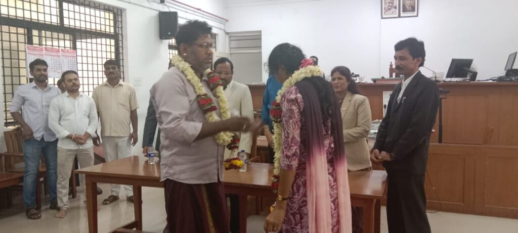 ಅದರಂತೆ ಶನಿವಾರ ಲೋಕ ಅದಾಲತ್ ಗೆ ಆಗಮಿಸಿದ್ದ ಹರೀಶ್-ಶಶಿಕಲಾ ದಂಪತಿಯು ಪ್ರಧಾನ ಜಿಲ್ಲಾ ನ್ಯಾಯಾಧೀಶ ಬಸವರಾಜ ಅವರ ಸಮಕ್ಷಮದಲ್ಲಿ ಪರಸ್ಪರ ಹಾರ ಬದಲಾಯಿಸುವ ಮೂಲಕ ಒಂದಾಗುವ ಮೂಲಕ ಪ್ರಕರಣ ಮುಕ್ತಾಯ ಗೊಂಡಿತು.
