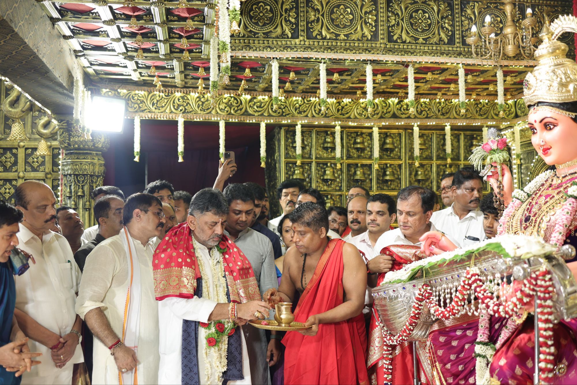 ಮಂಗಳೂರು : ವಿಶ್ವವಿಖ್ಯಾತ ಮಂಗಳೂರು ದಸರಾ ಸಂಭ್ರಮದಲ್ಲಿ ಜನರು ಭಕ್ತಿಭಾವದಿಂದ ತಲ್ಲೀನರಾಗಿರುವಾಗ ಕರ್ನಾಟಕ ರಾಜ್ಯದ ಉಪಮುಖ್ಯಮಂತ್ರಿ ಡಿ. ಕೆ. ಶಿವಕುಮಾರ್ ಕುದ್ರೋಳಿ ಶ್ರೀ ಗೋಕರ್ಣನಾಥ ಕ್ಷೇತ್ರಕ್ಕೆ ಭೇಟಿ ನೀಡಿದರು.