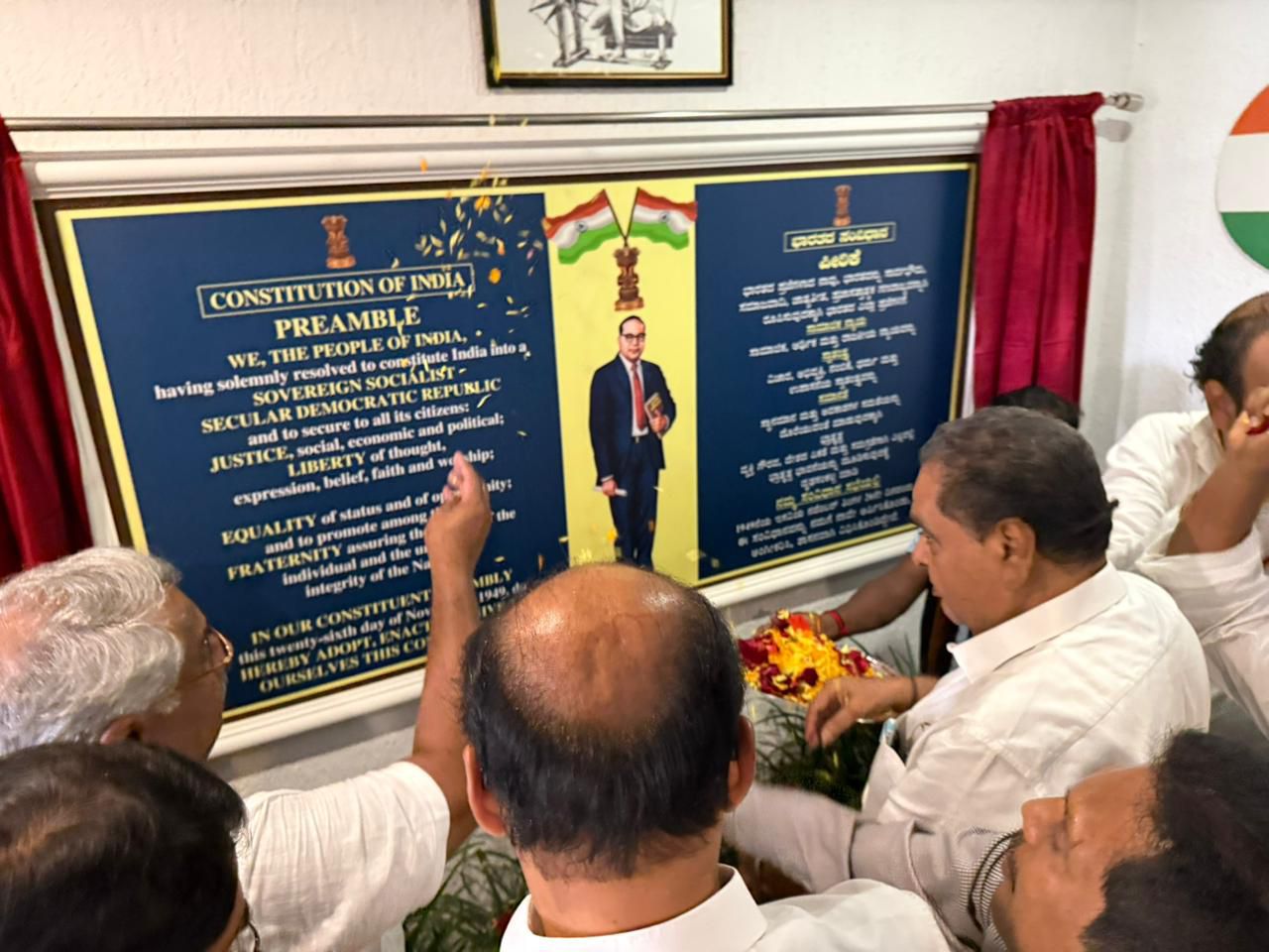 ಇದಕ್ಕೂ ಮುನ್ನ ಮಾಜಿ ಸಚಿವ ಬಿ.ರಮಾನಾಥ ರೈ ಕಾನೂನು ಘಟಕದ ವತಿಯಿಂದ ಕಾಂಗ್ರೆಸ್ ಭವನದಲ್ಲಿ ಅಳವಡಿಸಿದ ಸಂವಿಧಾನ ಪೀಠಿಕೆ ಮತ್ತು ಡಾ.ಬಿ.ಆರ್. ಅಂಬೇಡ್ಕರ್ ಭಾವಚಿತ್ರವನ್ನು ಅನಾವರಣಗೊಳಿಸಿದರು.