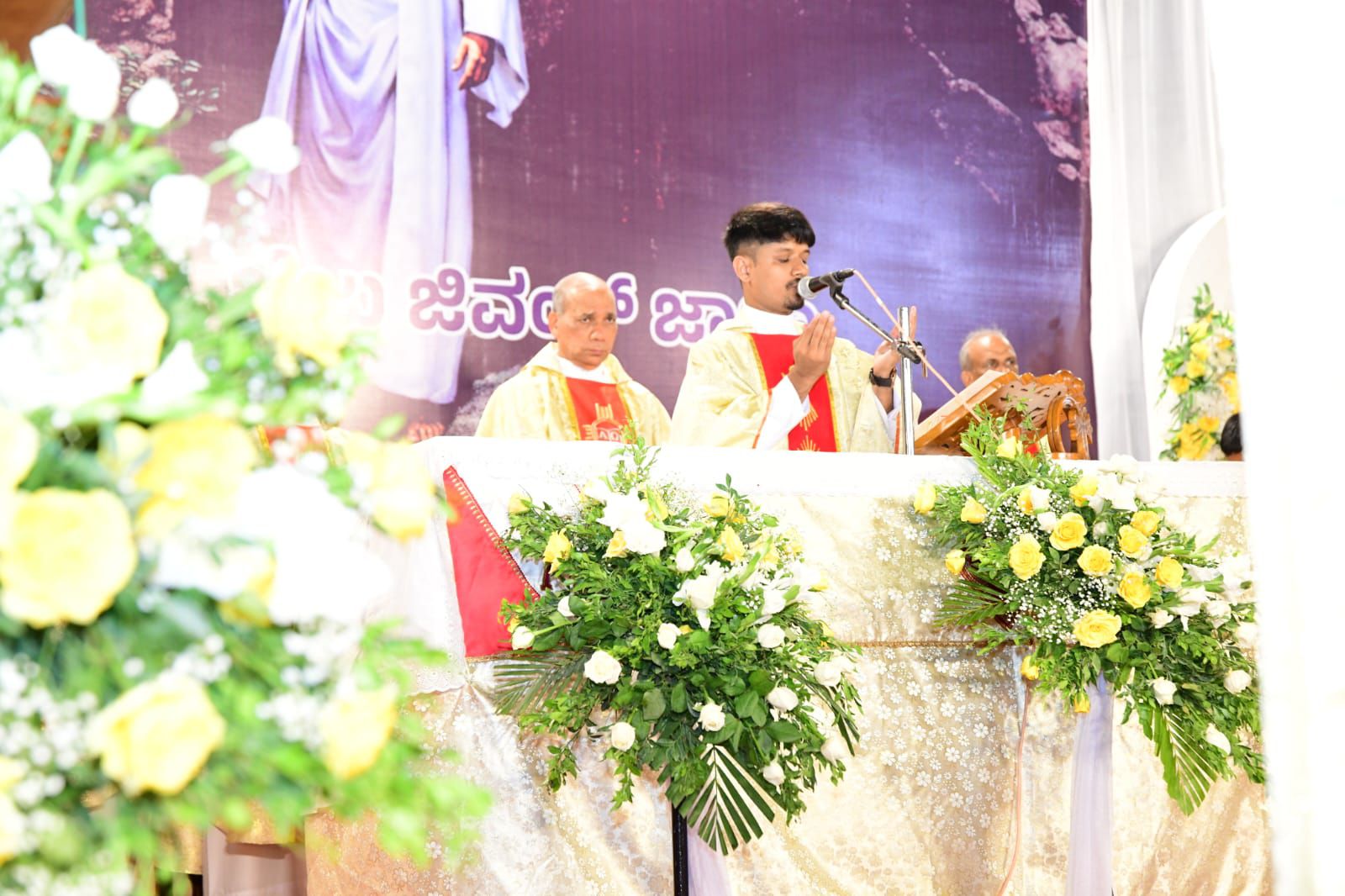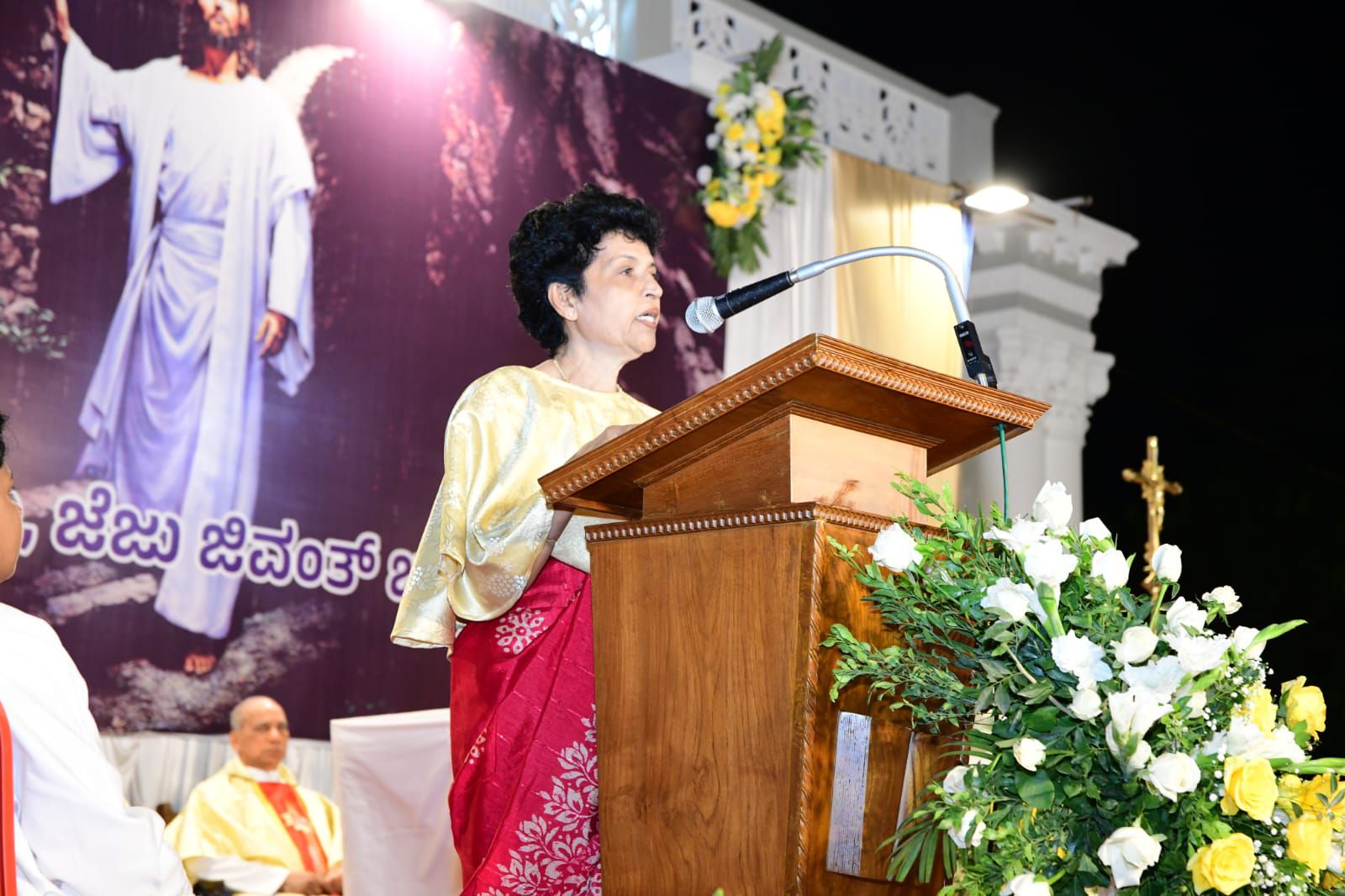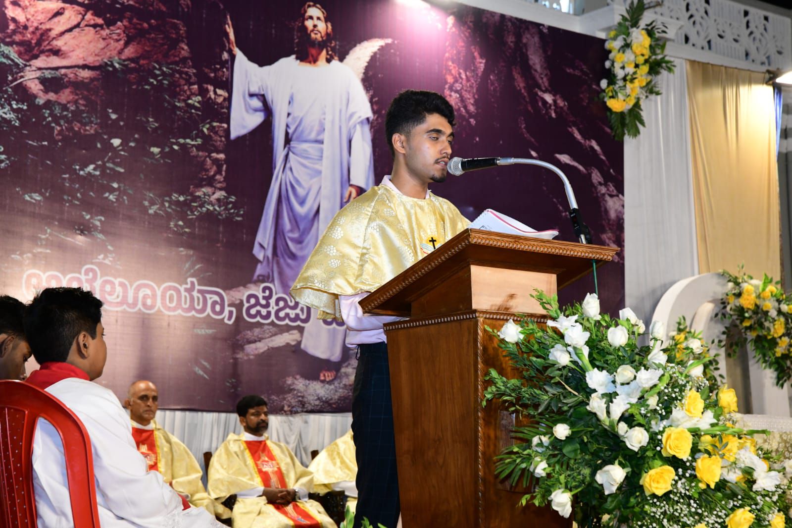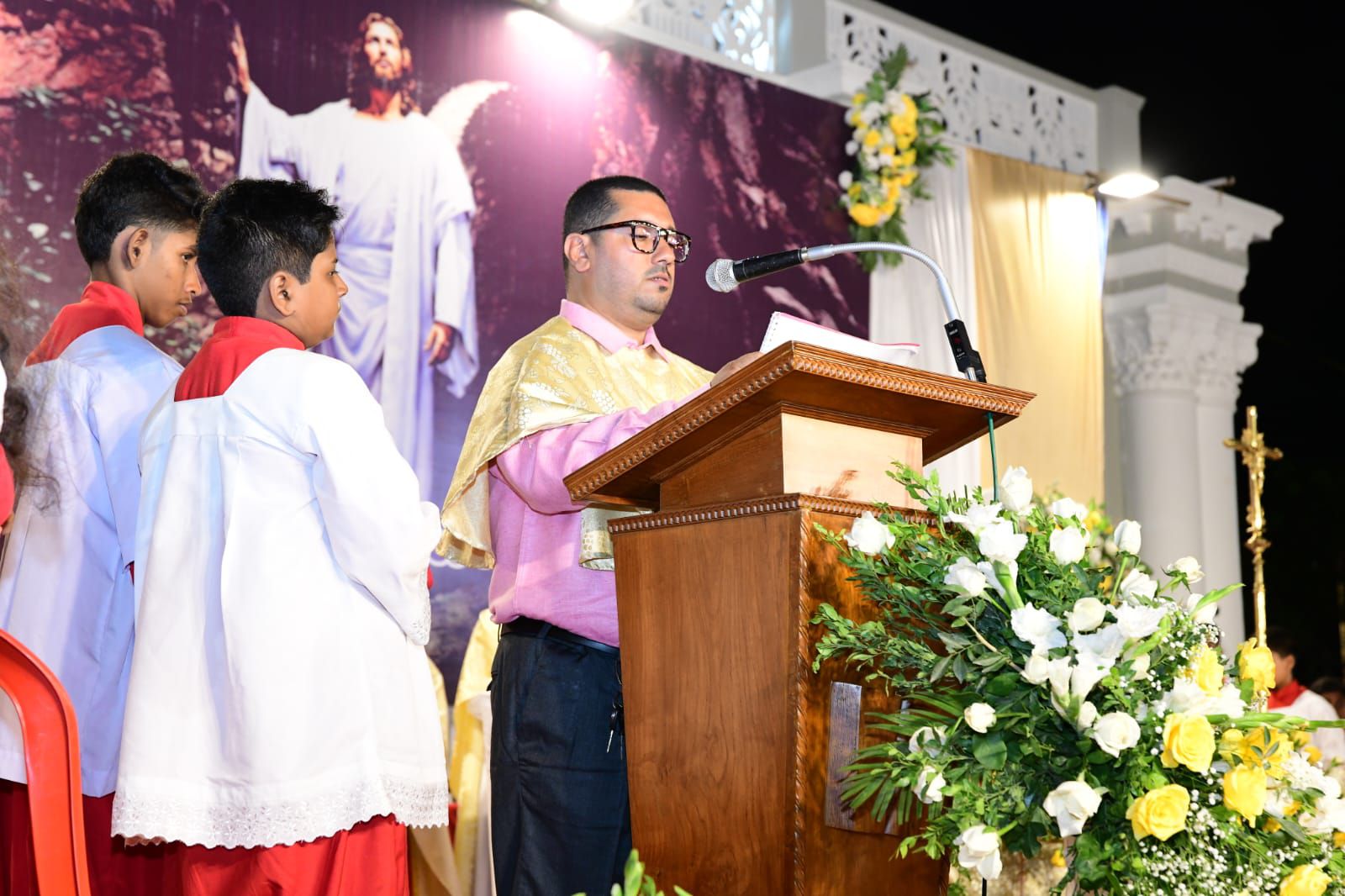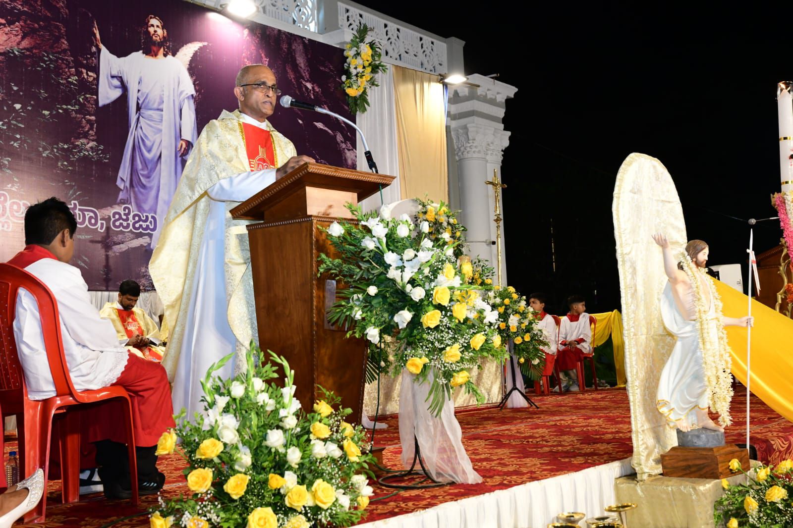 ಪವಿತ್ರ ಬಲಿಪೂಜೆಯನ್ನು ವಂದನೀಯ ಪೂಜ್ಯ ಬೊನಾವೆಂಚರ್ ನಜರೆತ್ ಅವರು ನೆರವೇರಿಸಿದರು. ವಂದನೀಯ ಪೂಜ್ಯ ಮ್ಯಾಕ್ಸಿಮ್ ರೊಸಾರಿಯೊ ಅವರು ಈ ಸಂದರ್ಭದಲ್ಲಿ ಪ್ರಬೋಧನೆ ನೀಡಿ, ಈಸ್ಟರ್ ಹಬ್ಬದ ಮಹತ್ವವನ್ನು ವಿವರಿಸಿದರು. ವಂದನೀಯ ಪೂಜ್ಯ ಉದಯ್ ಫೆರ್ನಾಂಡಿಸ್ ಅವರು ಸಾಂಪ್ರದಾಯಿಕ ಪಾಸ್ಕಾ ಸ್ತೋತ್ರವನ್ನು ಹಾಡಿದರು.
