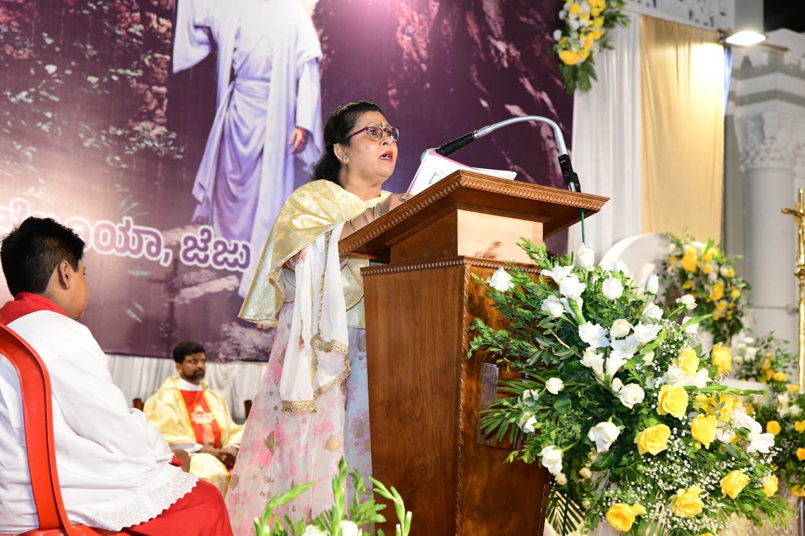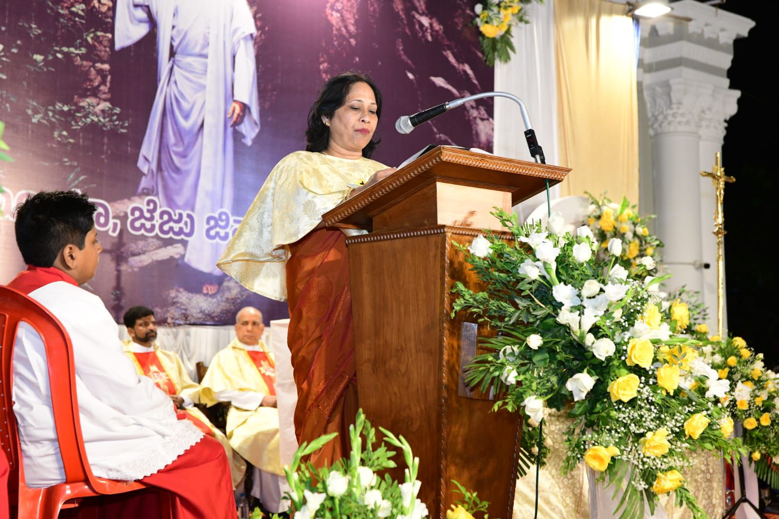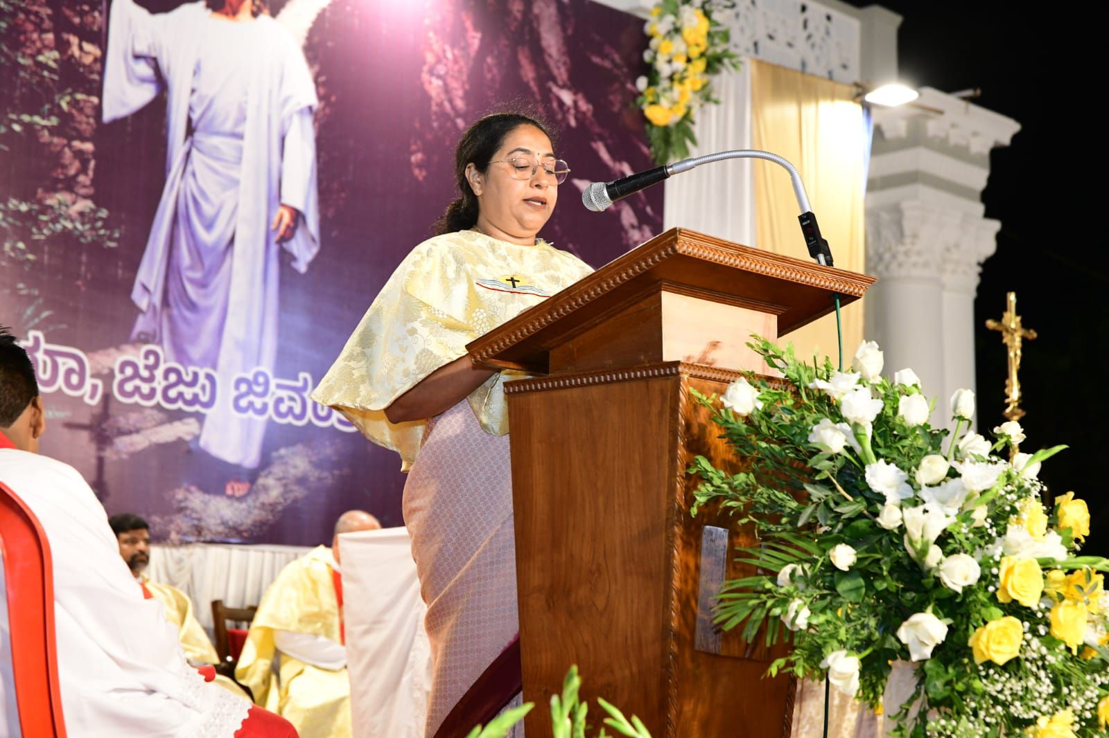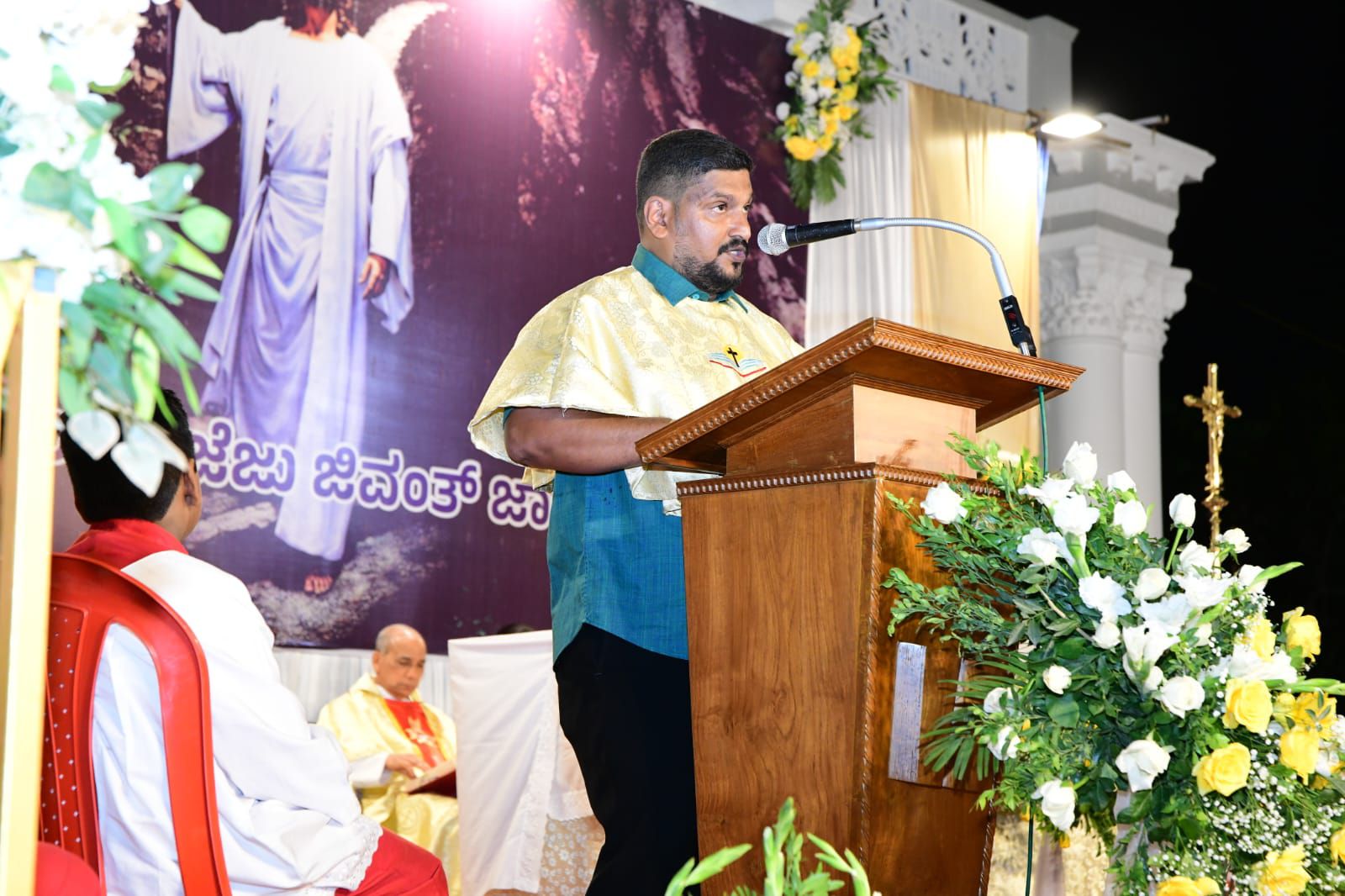 ಪವಿತ್ರ ಬಲಿಪೂಜೆಯನ್ನು ವಂದನೀಯ ಪೂಜ್ಯ ಬೊನಾವೆಂಚರ್ ನಜರೆತ್ ಅವರು ನೆರವೇರಿಸಿದರು. ವಂದನೀಯ ಪೂಜ್ಯ ಮ್ಯಾಕ್ಸಿಮ್ ರೊಸಾರಿಯೊ ಅವರು ಈ ಸಂದರ್ಭದಲ್ಲಿ ಪ್ರಬೋಧನೆ ನೀಡಿ, ಈಸ್ಟರ್ ಹಬ್ಬದ ಮಹತ್ವವನ್ನು ವಿವರಿಸಿದರು. ವಂದನೀಯ ಪೂಜ್ಯ ಉದಯ್ ಫೆರ್ನಾಂಡಿಸ್ ಅವರು ಸಾಂಪ್ರದಾಯಿಕ ಪಾಸ್ಕಾ ಸ್ತೋತ್ರವನ್ನು ಹಾಡಿದರು.