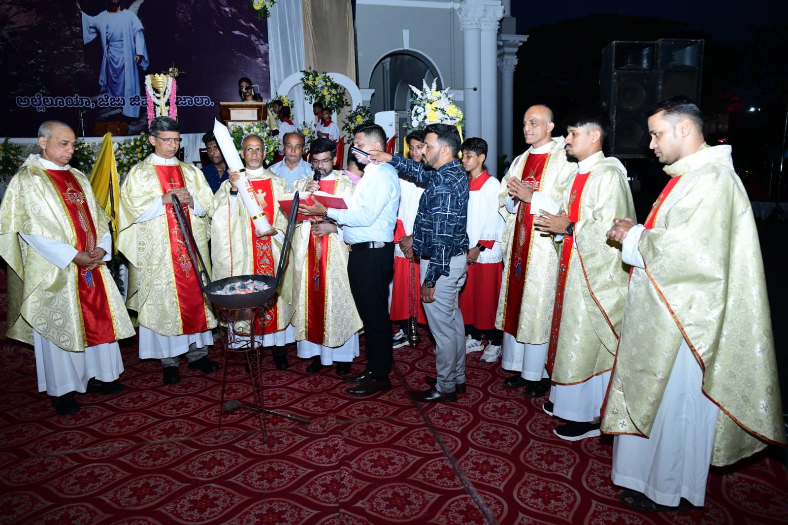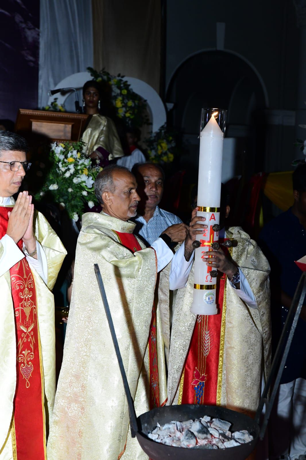 ಹಬ್ಬದ ಅಂಗವಾಗಿ ಬೆಂಕಿ ಮತ್ತು ಪವಿತ್ರ ನೀರಿನ ಆಶೀರ್ವಚನ ವಿಧಿಯನ್ನು ವಂದನೀಯ ಪೂಜ್ಯ ಜೆರಾಲ್ಡ್ ಪಿಂಟೊ ಅವರು ನೆರವೇರಿಸಿದರು. ಈ ಪವಿತ್ರ ಬಲಿಪೂಜೆಯಲ್ಲಿ ವಂದನೀಯ ಪೂಜ್ಯ ಅವಿತ್ ಪಾಯ್ಸ್ ಮತ್ತು ಪೂಜ್ಯ ಫ್ರಾಂಕ್ ಜೇಸನ್ ಪಿಂಟೊ ಅವರು ಸಹ-ಬಲಿಪೂಜಕರಾಗಿ ಭಾಗವಹಿಸಿದ್ದರು.