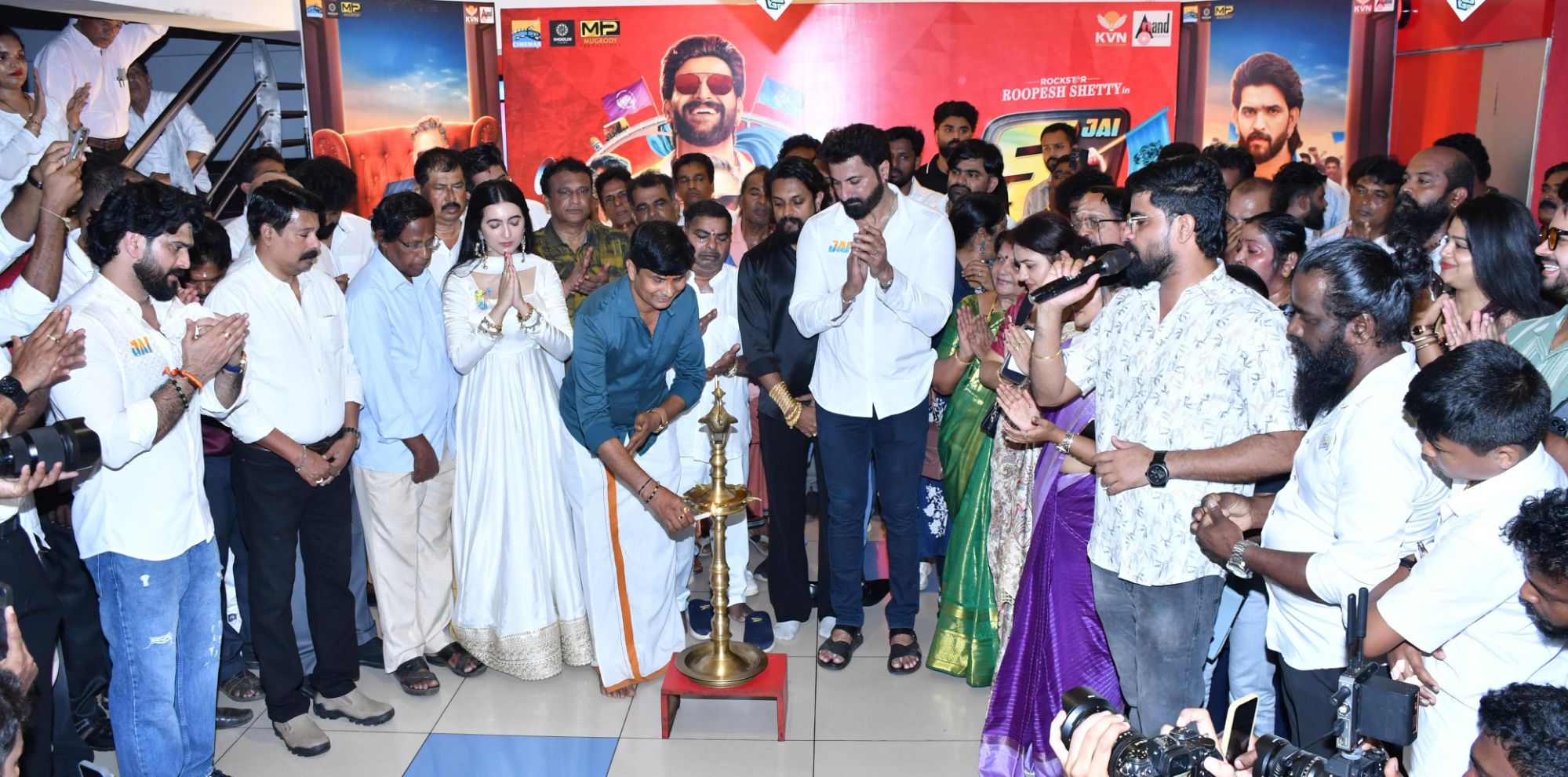 ಮಂಗಳೂರು: ನ.14 : ಆರ್ ಎಸ್ ಸಿನಿಮಾಸ್, ಶೂಲಿನ್ ಫಿಲಂಸ್, ಮುಗ್ರೋಡಿ ಪ್ರೊಡಕ್ಷನ್ ಲಾಂಛನದಲ್ಲಿ ತಯಾರಾದ ರೂಪೇಶ್ ಶೆಟ್ಟಿ ನಿರ್ದೇಶನದ ಜೈ ಸಿನಿಮಾ ಭಾರತ್ ಸಿನಿಮಾಸ್ ನಲ್ಲಿ ಶುಕ್ರವಾರ ಬಿಡುಗಡೆಗೊಂಡಿತು. ಅತಿಥಿಗಳು ದೀಪ ಬೆಳಗಿಸುವ ಮೂಲಕ ಸಿನಿಮಾ ಪ್ರದರ್ಶನಕ್ಕೆ ಚಾಲನೆ ನೀಡಿದರು.