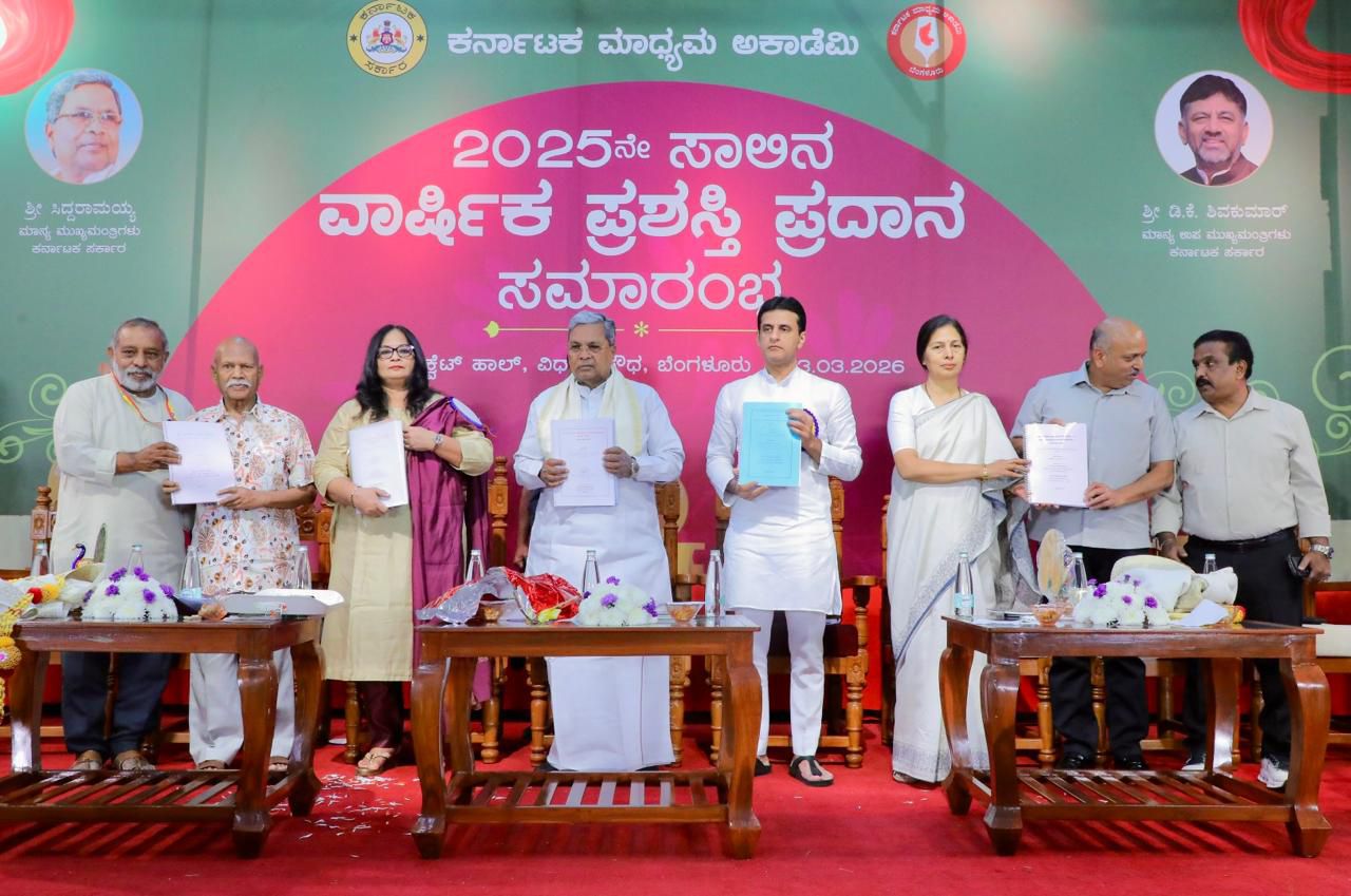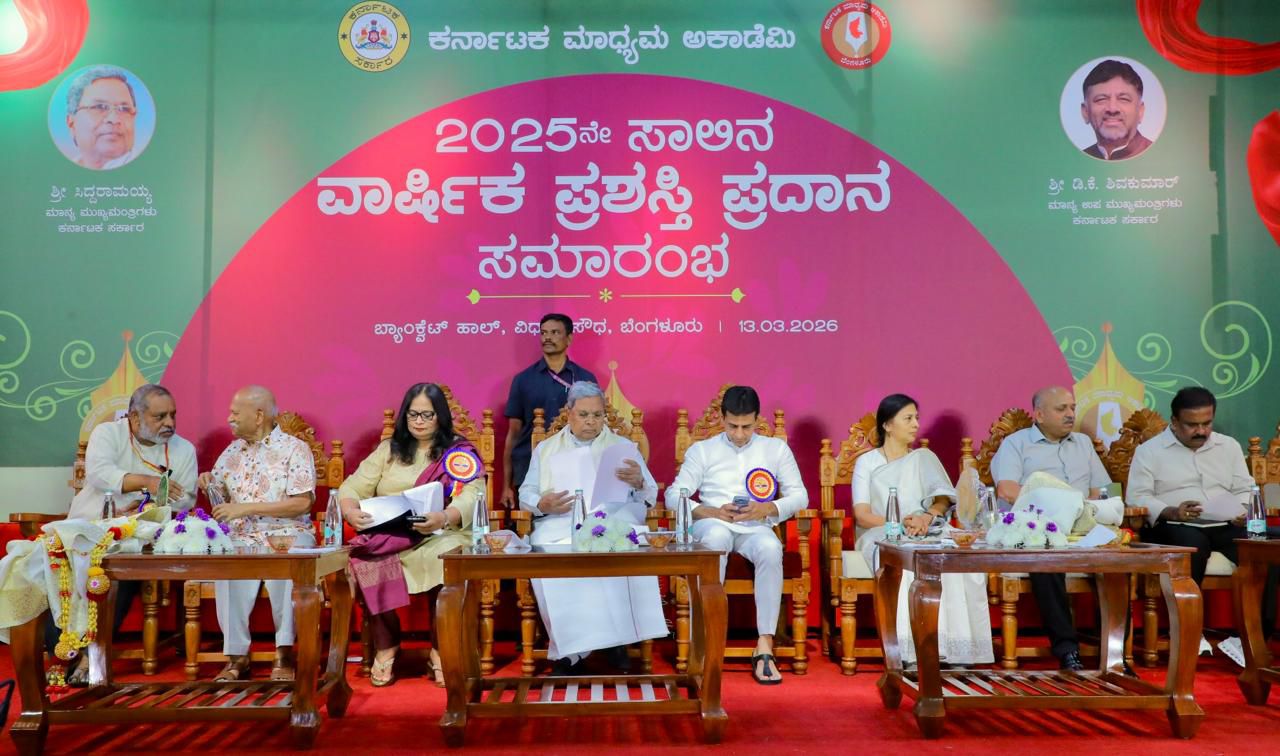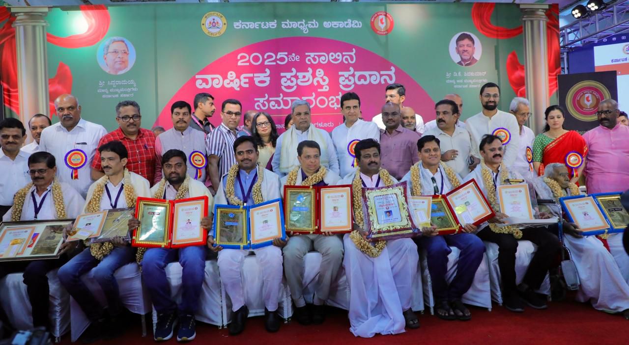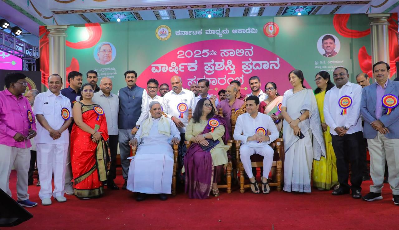 ಕರ್ನಾಟಕ ಮಾಧ್ಯಮ ಅಕಾಡೆಮಿ ಬ್ಯಾಂಕ್ವೆಟ್ ಹಾಲ್ ನಲ್ಲಿ ಆಯೋಜಿಸಿದ್ದ ಕಾರ್ಯಕ್ರಮದಲ್ಲಿ ಆಯ್ಕೆಯಾದ ಪತ್ರಕರ್ತರಿಗೆ “2025ನೇ ಸಾಲಿನ ವಾರ್ಷಿಕ ಪ್ರಶಸ್ತಿಗಳನ್ನು” ವಿತರಿಸಿ, ಸನ್ಮಾನಿಸಿ ಮಾತನಾಡಿದರು.