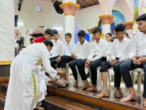 ವಂದನೀಯ ಧರ್ಮ ಗುರು ಬೋನವೆಂಚೆರ್ ನಝರೆತ್ ಆಯ್ಕೆಯಾದ ಪ್ರತಿನಿಧಿಗಳ ಪಾದಗಳನ್ನು ತೊಳೆದು, ವಿಶೇಷವಾಗಿ ಮಕ್ಕಳಿಗೆ ವರ್ಷವನ್ನು ಸಮರ್ಪಿಸಿದರು. ವಂದನೀಯ ಧರ್ಮ ರಾಜೇಶ್ ರೋಸಾರಿಯೋ (ರೆಕ್ಟರ್ ಸಂತ ಜೋಸೆಫರ ಸೆಮಿನರಿ ) ಗುರು ಆಲ್ವಿನ್ ಮತ್ತು ವಂದನೀಯ ಧರ್ಮ ಗುರು ಜೆರಾಲ್ಡ್ ಮತ್ತು ಧರ್ಮ ಭಗೀನಿ ಯರು ಮತ್ತು ಹೆಚ್ಚಿನ ಸಂಖ್ಯೆಯ ವಿಶ್ವಾಸಿಗಳು ಪವಿತ್ರ ಬಲಿ ಪೂಜೆ ಯಲ್ಲಿ ಭಾಗವಹಿಸಿ ಯೇಸುವಿನ ಮಾನವೀಯತೆಯ ಮೇಲಿನ ಬೇಷರತ್ತಾದ ಮತ್ತು ನಿಷ್ಠಾವಂತ ಪ್ರೀತಿಯ ಬಗ್ಗೆ ಧ್ಯಾನಿಸಿದರು.