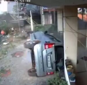 ಮಂಗಳೂರು: ಕಾರಿನ ಟೈಯರ್ ಬ್ಲಾಸ್ಟ್ ಆದ ಪರಿಣಾಮ ಕಾರು ನಿಯಂತ್ರಣ ತಪ್ಪಿ ರಸ್ತೆಯಿಂದ ಎಸೆಯಲ್ಪಟ್ಟ ಮನೆಯೊಂದಕ್ಕೆ ಡಿಕ್ಕಿ ಹೊಡೆದು ಪಲ್ಟಿಯಾದ ಘಟನೆ ಕಾವೂರು ಬಳಿಯ ಮರಕಡದಲ್ಲಿ ಜನವರಿ 1 ರಂದು ಸಂಭವಿಸಿದೆ. ಈ ಅಪಘಾತದಲ್ಲಿ ಕಾರಿನಲ್ಲಿದ್ದ ಬೋಂದೆಲ್ ಚರ್ಚ್ ಪಾದ್ರಿ ಅದೃಷ್ಟವಶಾತ್ ಅಪಾಯದಿಂದ ಪಾರಾಗಿದ್ದಾರೆ.
