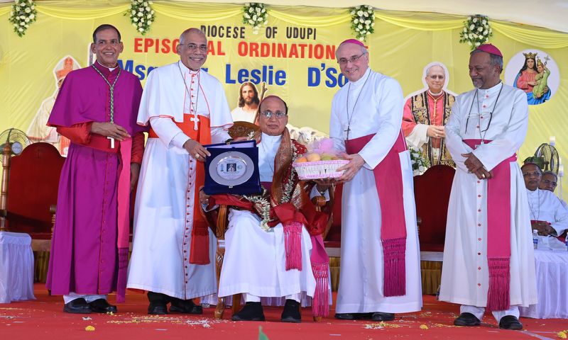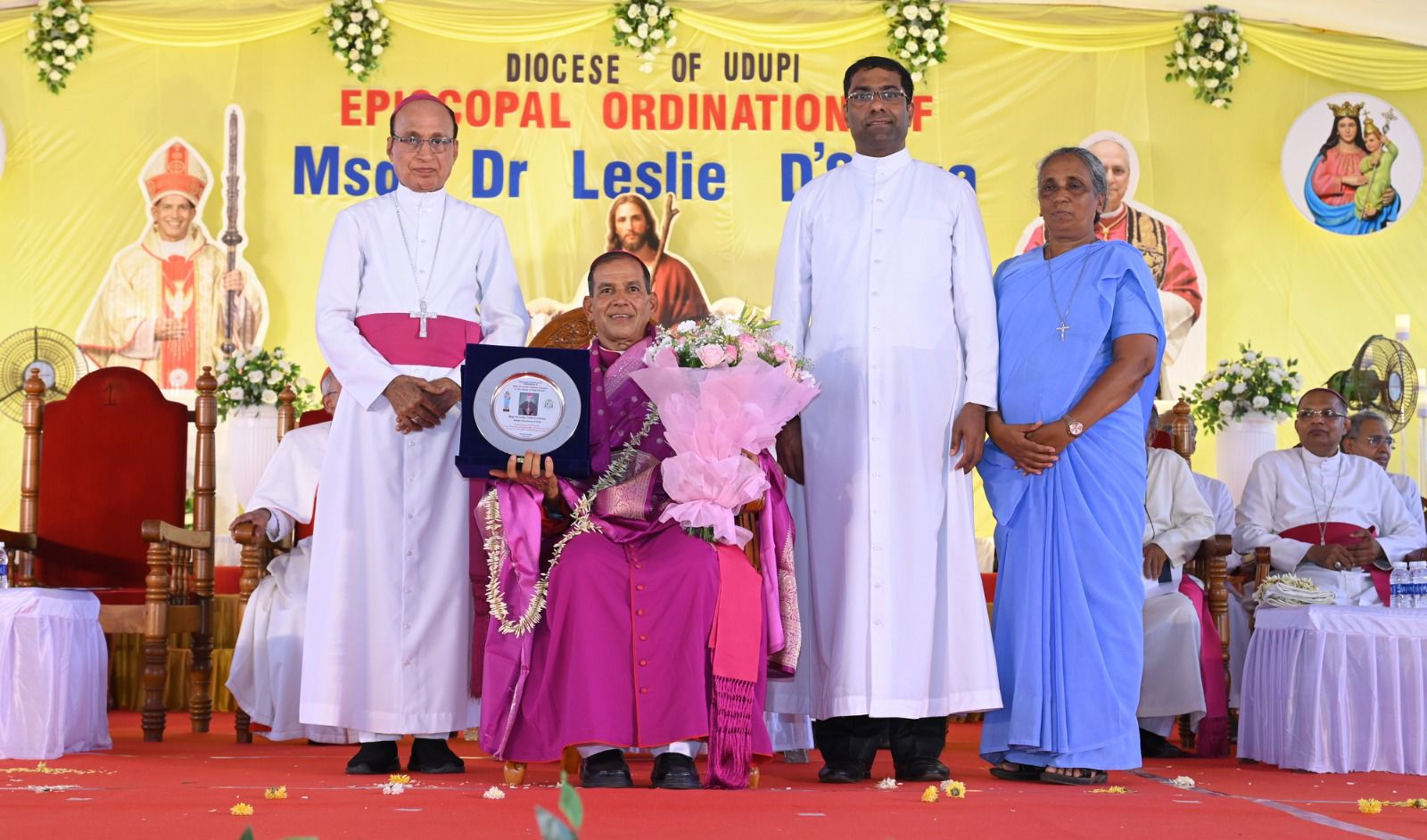 ಉಡುಪಿ. ಏಪ್ರಿಲ್ 20: ಉಡುಪಿಯ ಕಲ್ಯಾಣಪುರದ ಮಿಲಾಗ್ರಿಸ್ ಪ್ರಧಾನಾಲಯದ ಆವರಣದಲ್ಲಿ ನಡೆದ ಅತ್ಯಂತ ಪವಿತ್ರ ಹಾಗೂ ಐತಿಹಾಸಿಕ ಸಮಾರಂಭದಲ್ಲಿ ಪರಮ ಪೂಜ್ಯ ಅತೀ ವಂದನೀಯ ಡಾ. ಲೆಸ್ಲಿ ಕ್ಲಿಫರ್ಡ್ ಡಿಸೋಜ ಅವರು ಉಡುಪಿ ಧರ್ಮಕ್ಷೇತ್ರದ ನೂತನ ಧರ್ಮಾಧ್ಯಕ್ಷರಾಗಿ ಇಂದು ಏಪ್ರಿಲ್ 20ರಂದು ಸೋಮವಾರ ಅಧಿಕಾರ ಸ್ವೀಕಾರ ಮಾಡಿದರು. ಈ ಮೂಲಕ ಉಡುಪಿ ಧರ್ಮಕ್ಷೇತ್ರದ ಆಧ್ಯಾತ್ಮಿಕ ಸಾರಥ್ಯವು ಹೊಸ ನಾಯಕತ್ವಕ್ಕೆ ಹಸ್ತಾಂತರಗೊಂಡಿತು.