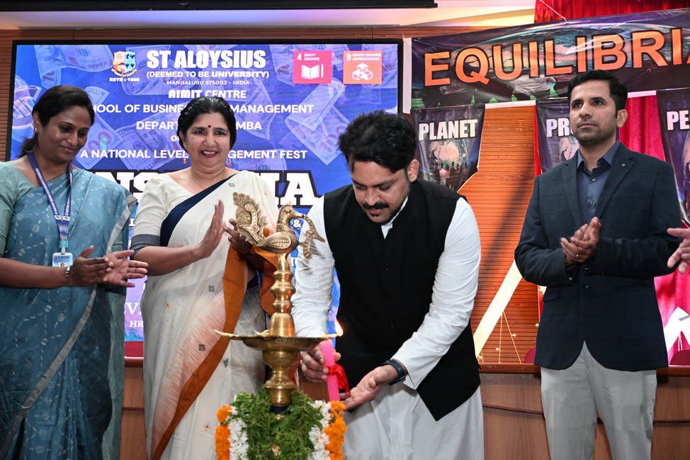 ಮಂಗಳೂರಿನ ಸೇಂಟ್ ಅಲೋಶಿಯಸ್ ಪರಿಗಣಿತ ವಿಶ್ವವಿದ್ಯಾಲಯದ ಎಐಎಂಐಟಿ ಕೇಂದ್ರದ ಸ್ಕೂಲ್ ಆಫ್ ಬಿಸಿನೆಸ್ ಅಂಡ್ ಮ್ಯಾನೇಜ್ಮೆಂಟ್ನ ಎಂಬಿಎ ವಿಭಾಗವು, ಮಾರ್ಚ್ 16 ರಂದು ಬೀರಿಯಲ್ಲಿರುವ ಎಐಎಂಐಟಿ ಕೇಂದ್ರದ ಆರ್ಥರ್ ಶೆಣಯ್ ಸಭಾಂಗಣದಲ್ಲಿ ತನ್ನ ರಾಷ್ಟ್ರಮಟ್ಟದ ಮ್ಯಾನೇಜ್ಮೆಂಟ್ ಫೆಸ್ಟ್ ‘ಇನ್ಸಿಗ್ನಿಯಾ 2026’ ಅನ್ನು ಆಯೋಜಿಸಿತ್ತು.
