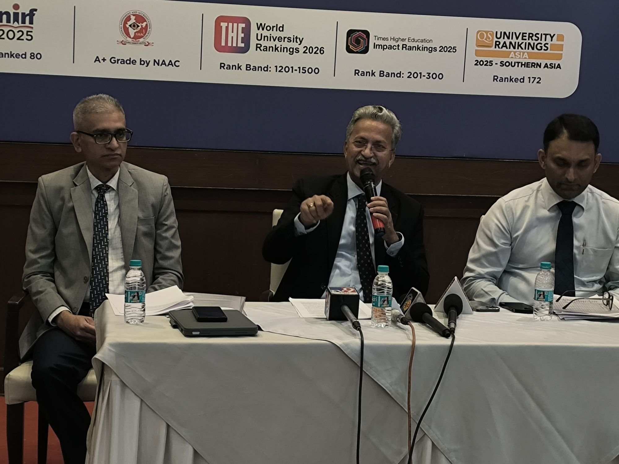 ಪತ್ರಿಕಾಗೋಷ್ಠಿಯಲ್ಲಿ ಕುಲಸಚಿವರಾದ ಪ್ರೊ. ಡಾ. ಹರ್ಷ ಹಾಲಹಳ್ಳಿ. ಪರೀಕ್ಷಾ ನಿಯಂತ್ರಕ ಪ್ರೊ. ಡಾ. ಪ್ರಸಾದ್ ಬಿ. ಶೆಟ್ಟಿ, ನಿಟ್ಟೆ ಕ್ಯಾಂಪಸ್ ಪರೀಕ್ಷಾ ನಿಯಂತ್ರಕರಾದ ಡಾ. ಸುಬ್ರಮಣ್ಯ ಭಟ್, ಪಿ ಆರ್ ಓ ಹೇಮಂತ್ ಶೆಟ್ಟಿ ಉಪಸ್ಥಿತರಿದ್ದರು.