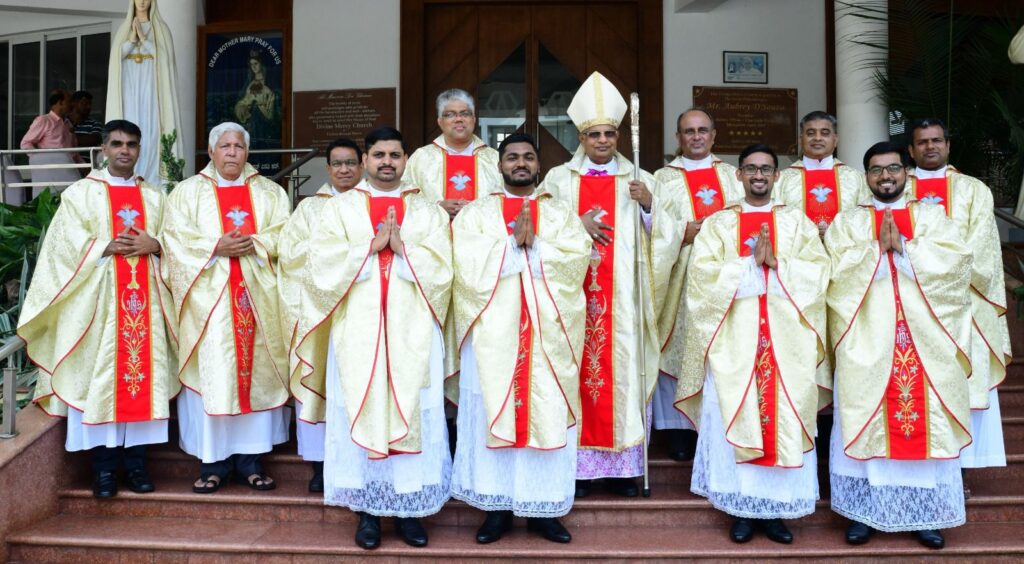 ಮಂಗಳೂರು ಅ 04: ಮಂಗಳೂರು ಧರ್ಮಕ್ಷೇತ್ರದ ಧರ್ಮಾಧ್ಯಕ್ಷರಾದ ಅತೀ ವಂದನೀಯ ಡಾ. ಪೀಟರ್ ಪಾವ್ಲ್ ಸಲ್ಡಾನ್ಹರವರು, ಕರ್ನಾಟಕ ಜೆಸ್ವಿಟ್ ಪ್ರಾಂತ್ಯದ ನಾಲ್ಕು ಉಪಯಾಜಕರುಗಳಿಗೆ ಯಾಜಕ ದೀಕ್ಷೆಯನ್ನು ಮಂಗಳೂರಿನ ಫಾತಿಮಾ ಧ್ಯಾನ ಮಂದಿರದಲ್ಲಿ ಅಕ್ಟೋಬರ್ 04 ರಂದು ನೀಡಿದರು.