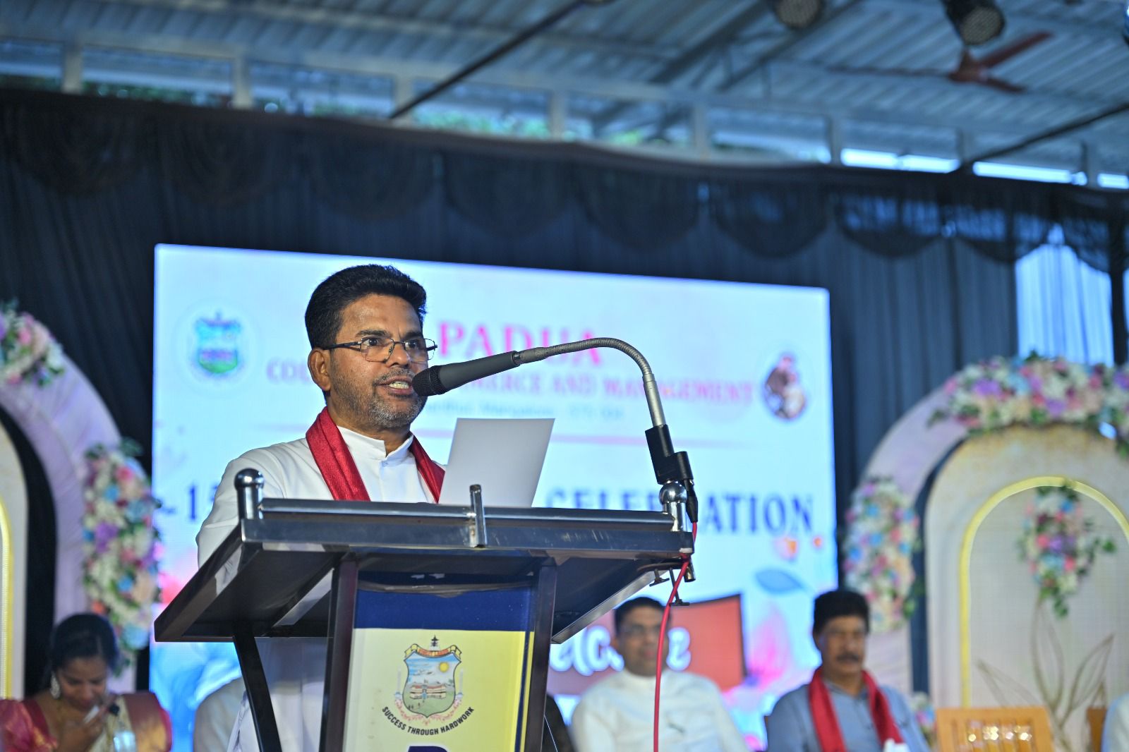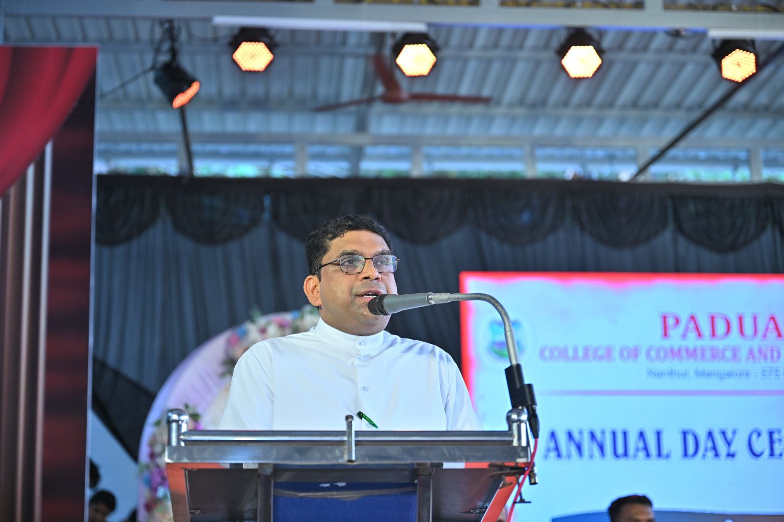 ಪಾದುವಾ ಸಮೂಹ ಶಿಕ್ಷಣ ಸಂಸ್ಥೆಗಳ ಸಂಚಾಲಕರಾದ ವಂದನೀಯ ಗುರುಗಳು ವಾಲ್ಟರ್ ಡಿಸೋಜ ಅವರು ಅಧ್ಯಕ್ಷೀಯ ನೆಲೆಯಲ್ಲಿ ಮಾತನಾಡಿ ವಿದ್ಯಾರ್ಥಿಗಳನ್ನು, ಪ್ರಾಧ್ಯಾಪಕರನ್ನು ಉದ್ದೇಶಿಸಿ ಉತ್ತೇಜನಪೂರ್ಣ ಮಾತುಗಳನ್ನಾಡಿದರು