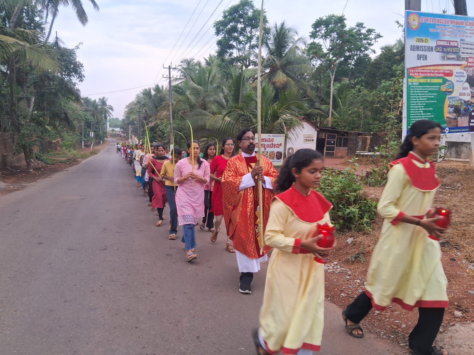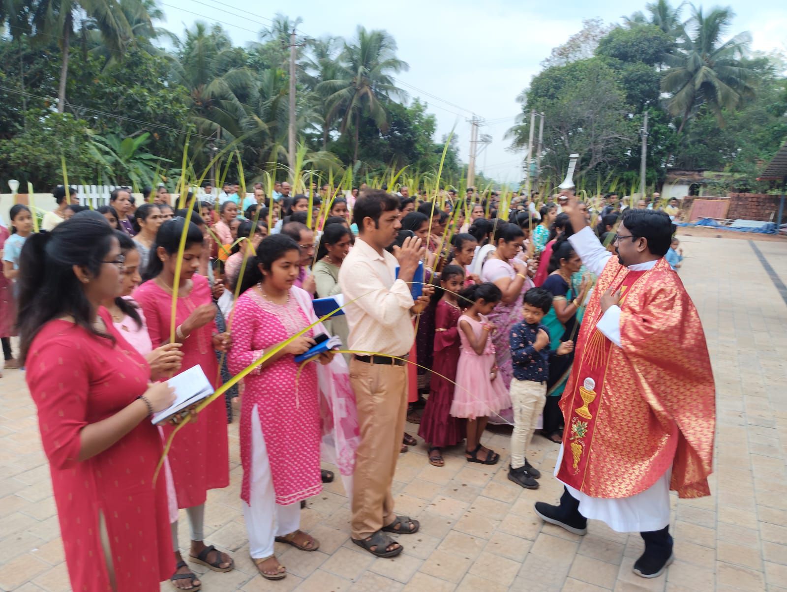 ಚರ್ಚ್ ಸಭಾಂಗಣದ ಬಳಿ ನಡೆದ ಧಾರ್ಮಿಕ ವಿಧಿಯ ನೇತೃತ್ವವನ್ನು ಧರ್ಮಗುರು ವಂದನೀಯ ಸೈಮನ್ ಡಿಸೋಜಾ ಅವರು ವಹಿಸಿದ್ದರು. ಈ ಸಂದರ್ಭದಲ್ಲಿ ಗರಿಗಳ ಆಶೀರ್ವಚನ ಮತ್ತು ಪವಿತ್ರ ಬೈಬಲ್ ವಾಚನ ನಡೆಯಿತು. ಬಳಿಕ ಭಕ್ತಾದಿಗಳು ಕೈಯಲ್ಲಿ ಗರಿಗಳನ್ನು ಹಿಡಿದು ‘ಹೊಸ್ಸಾನ್ಹಾ’ ಜಯಘೋಷದೊಂದಿಗೆ ಚರ್ಚ್ಗೆ ಭವ್ಯ ಮೆರವಣಿಗೆ ನಡೆಸಿದರು.