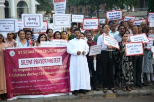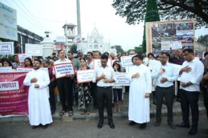 ಮಂಗಳೂರು: ಕ್ರಿಸ್ಮಸ್ ಹಬ್ಬದ ವೇಳೆ ದೇಶವ್ಯಾಪ್ತಿ ಕ್ರೈಸ್ತರ ಮೇಲೆ ನಡೆದ ದಾಳಿಗಳನ್ನು ಖಂಡಿಸಿ, ಸಂತ ಸೆಬಾಸ್ಟಿಯನ್ ಚರ್ಚ್, ಬೆಂದೂರು, ಮಂಗಳೂರು ವತಿಯಿಂದ ಜ.3ರಂದು ಸಂಜೆ 6 ಗಂಟೆಗೆ ಚರ್ಚಿನ ಮುಂಭಾಗದಲ್ಲಿ ಮೌನ ಪ್ರತಿಭಟನೆ ಆಯೋಜಿಸಲಾಯಿತು.