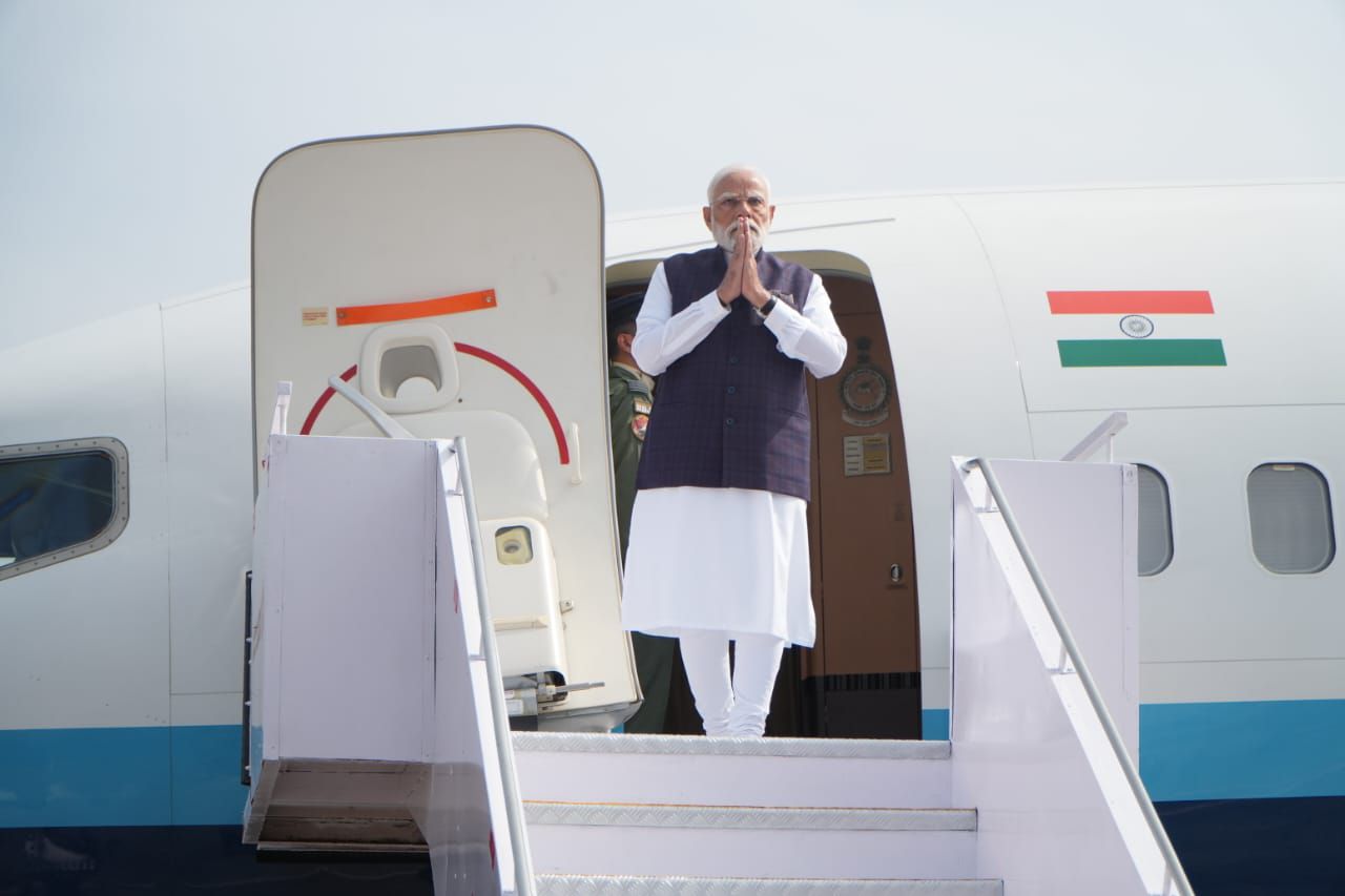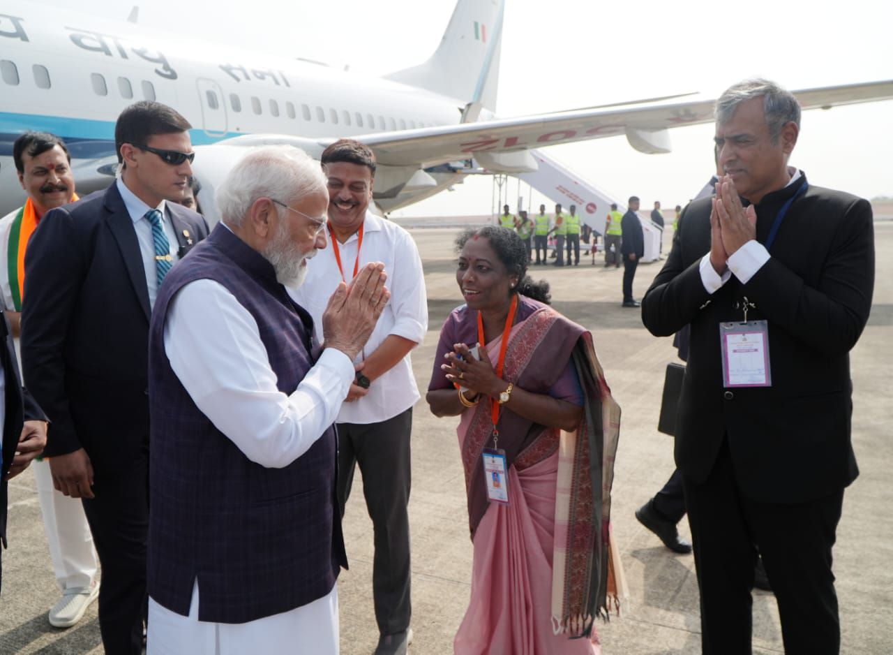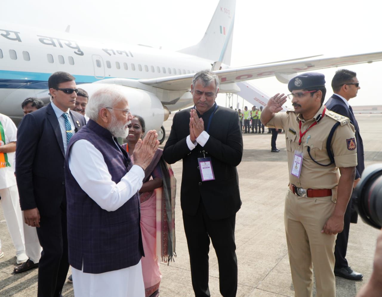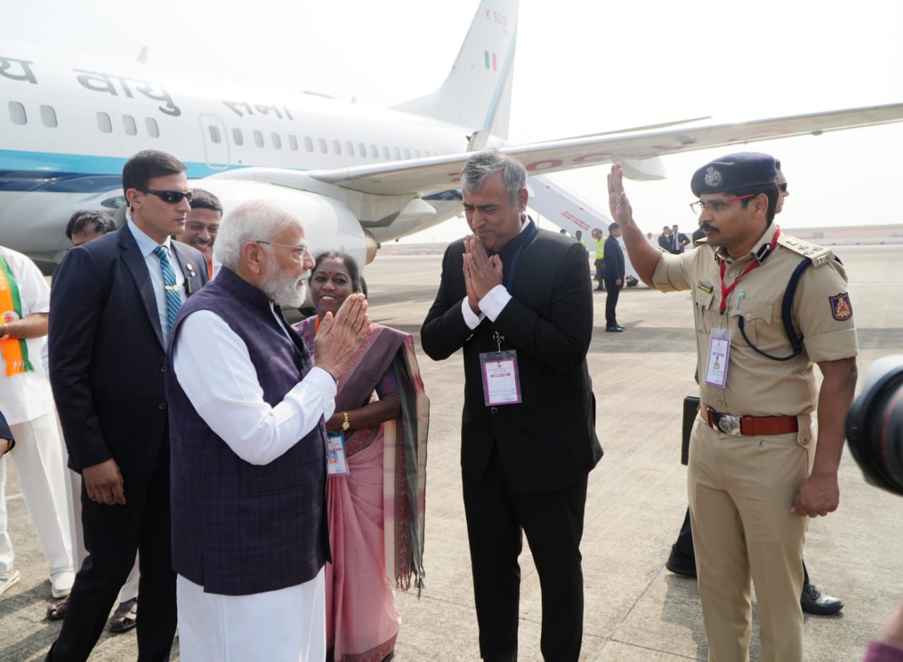 ಬೆಳಿಗ್ಗೆ 10.25ಕ್ಕೆ ಭಾರತೀಯ ವಾಯುಪಡೆ ವಿಮಾನದಲ್ಲಿ ಆಗಮಿಸಿದ ಪ್ರಧಾನಮಂತ್ರಿಗಳನ್ನು, ರಾಜ್ಯ ಸರಕಾರದ ಪರವಾಗಿ ಆರೋಗ್ಯ ಮತ್ತು ಜಿಲ್ಲಾ ಉಸ್ತುವಾರಿ ಸಚಿವ ದಿನೇಶ್ ಗುಂಡೂರಾವ್, ಸ್ವಾಗತಿಸಿದರು.