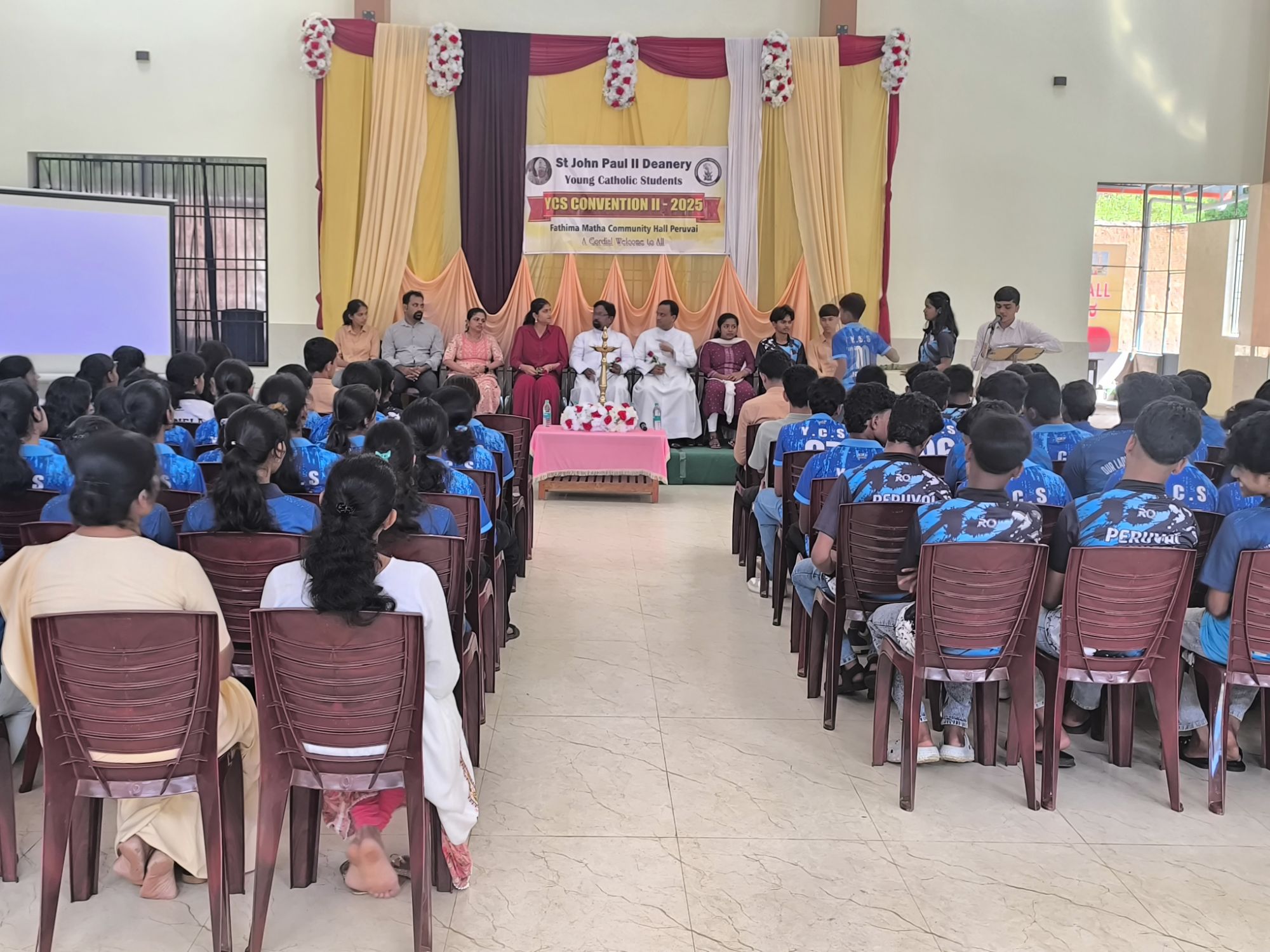 ವಿಟ್ಲ: ಮಂಗಳೂರು ಧರ್ಮ ಪ್ರಾಂತ್ಯ ವ್ಯಾಪ್ತಿಯ ಸಂತ ಜಾನ್ ಪಾವ್ಲ್ ದ್ವಿತೀಯ ವಿಟ್ಲ ವಲಯದ ವೈಸಿಎಸ್ ಸಂಘಟನೆಯ 2025 ನೇ ಸಾಲಿನ ದ್ವಿತೀಯ ಸಮಾವೇಶ ಭಾನುವಾರ ಅಕ್ಟೋಬರ್ 19 ರಂದು ಪೆರುವಾಯಿ ಫಾತಿಮಾ ಮಾತಾ ಸಮುದಾಯ ಭವನದಲ್ಲಿ ನಡೆಯಿತು. ವಿಟ್ಲ ವಲಯದ ಮುಖ್ಯ ಗುರುಗಳು ಮತ್ತು ಎಲ್ಲಾ ಗುರುಗಳ ಸಹಭಾಗಿತ್ವದಲ್ಲಿ ನಡೆದ ಸಮಾವೇಶದಲ್ಲಿ ವಲಯ ವ್ಯಾಪ್ತಿಯ 8 ಚರ್ಚ್ ಗಳ 85 ಮಂದಿ ವೈಸಿಎಸ್ ಸದಸ್ಯರು ಭಾಗವಹಿಸಿದ್ದರು.