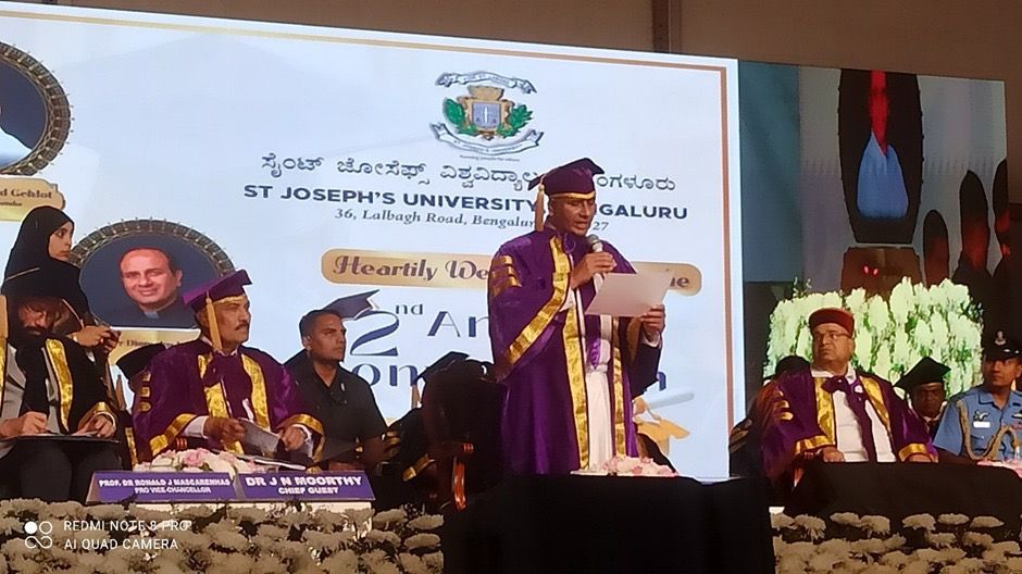 ಬೆಂಗಳೂರು, : ಸೇಂಟ್ ಜೋಸೆಫ್ ವಿಶ್ವವಿದ್ಯಾಲಯದ ದ್ವಿತೀಯ ಪದವಿ ಪ್ರದಾನ ಸಮಾರಂಭ ಶನಿವಾರ ದಂದು ನಡೆಯಿತು. ಮೊದಲಿಗೆ ರ್ಯಾಂಕ್ ಹೋಲ್ಡರ್ಸ್ ಮತ್ತು ವಿಶೇಷ ಪ್ರಶಸ್ತಿ ವಿಜೇತರ ಮೆರವಣಿಗೆಯೊಂದಿಗೆ ಕಾರ್ಯಕ್ರಮ ಆರಂಭವಾಯಿತು.