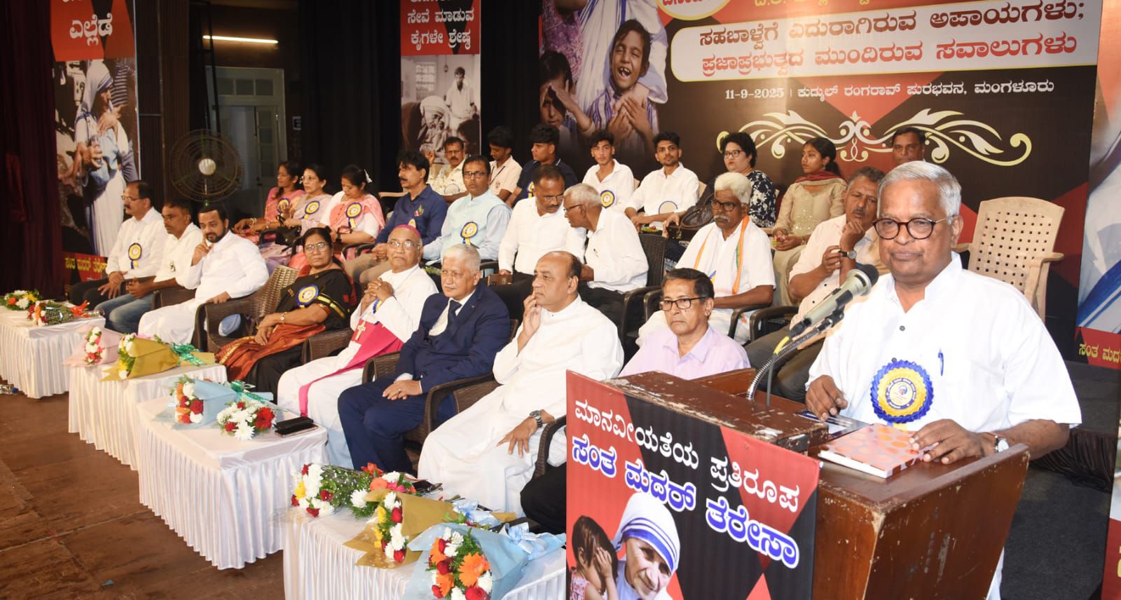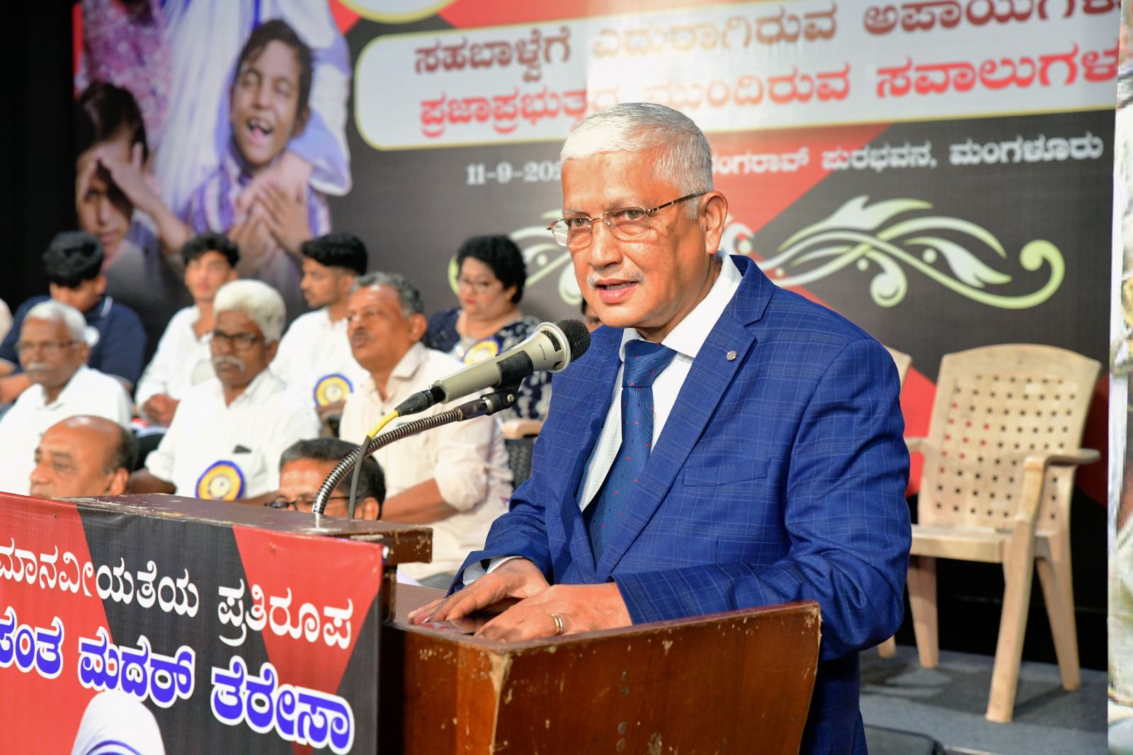 ಮಂಗಳೂರು ಸಂತ ಮದರ್ತೆರೇಸಾ ವಿಚಾರ ವೇದಿಕೆ ವತಿಯಿಂದ ಮದರ್ ತೆರೇಸಾ ಅವರ 28ನೇ ಸಂಸ್ಕರಣ ದಿನದ ಅಂಗವಾಗಿ ‘ಸಹಬಾಳ್ವೆಗೆ ಎದುರಾಗಿರುವ ಅಪಾಯಗಳು; ಪ್ರಜಾಪ್ರಭುತ್ವದ ಮುಂದಿ ರುವ ಸವಾಲುಗಳು’ ಎಂಬ ವಿಷಯದಲ್ಲಿ ಕುದ್ಮುಲ್ ರಂಗರಾವ್ ಪುರಭವನದಲ್ಲಿ ಗುರುವಾರ ನಡೆದ ವಿಚಾರ ಸಂಕಿರಣ ಉದ್ಘಾಟಿಸಿ ಅವರು ಮಾತನಾಡಿದರು.