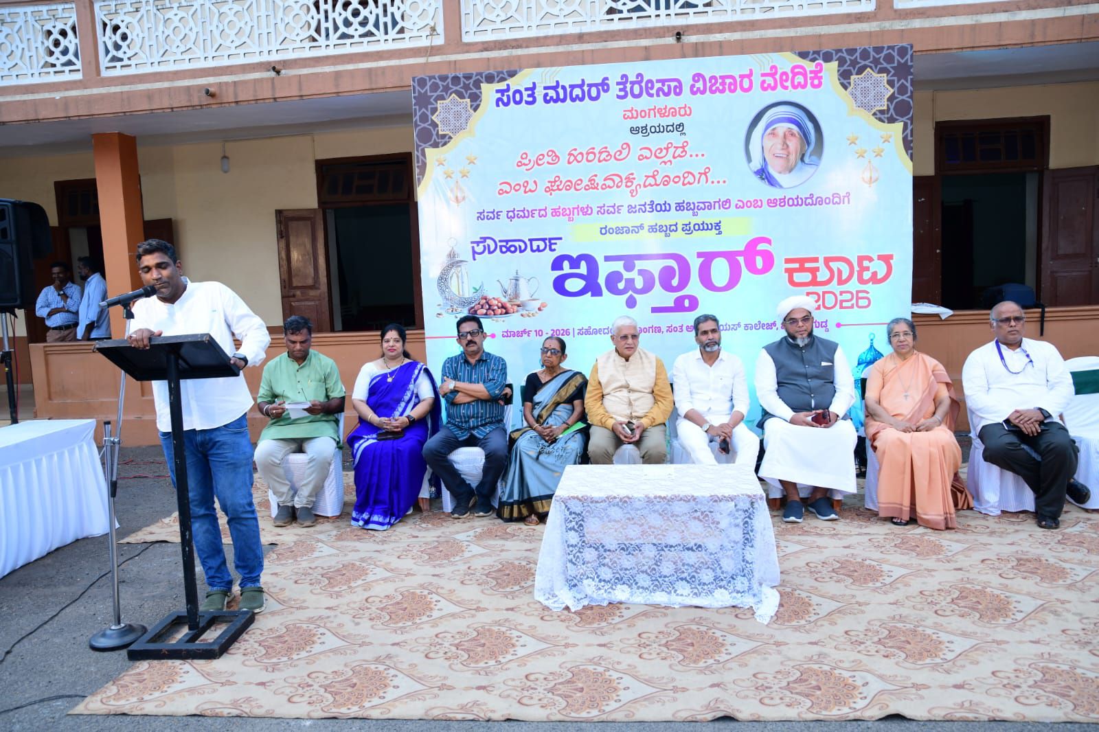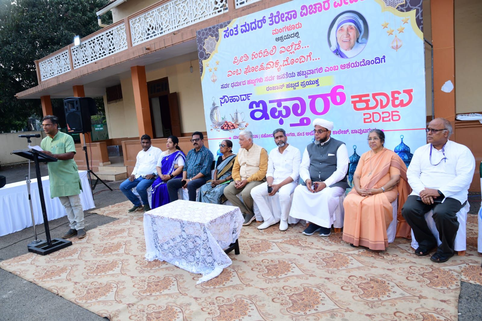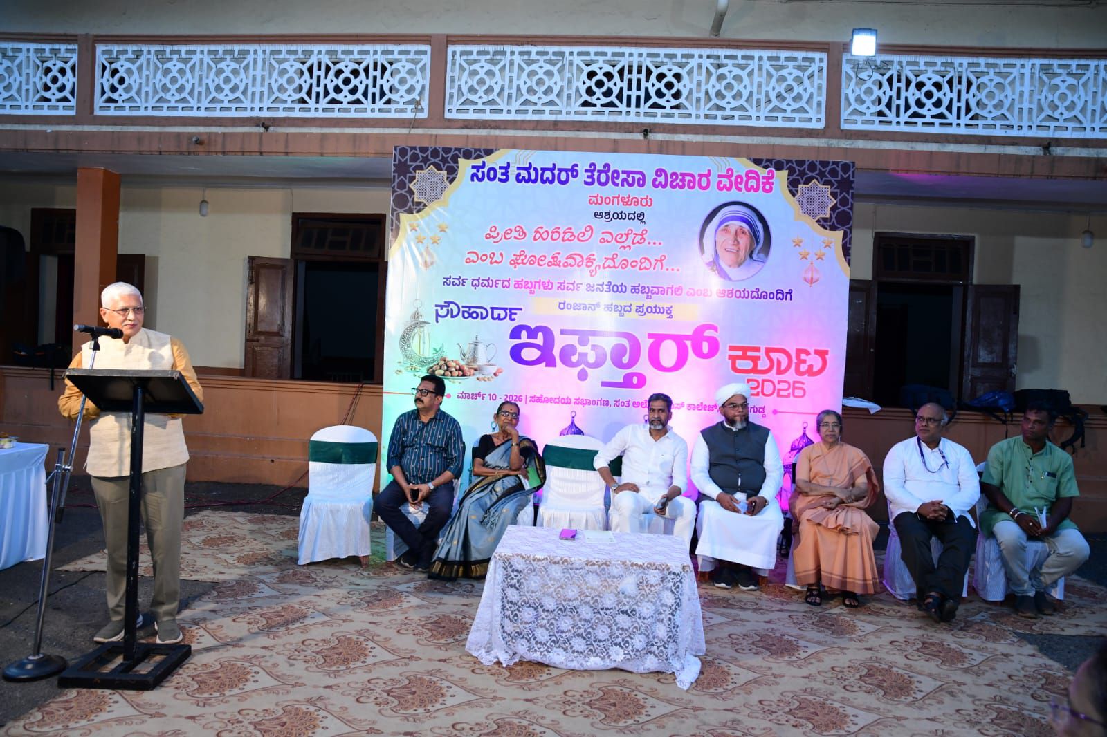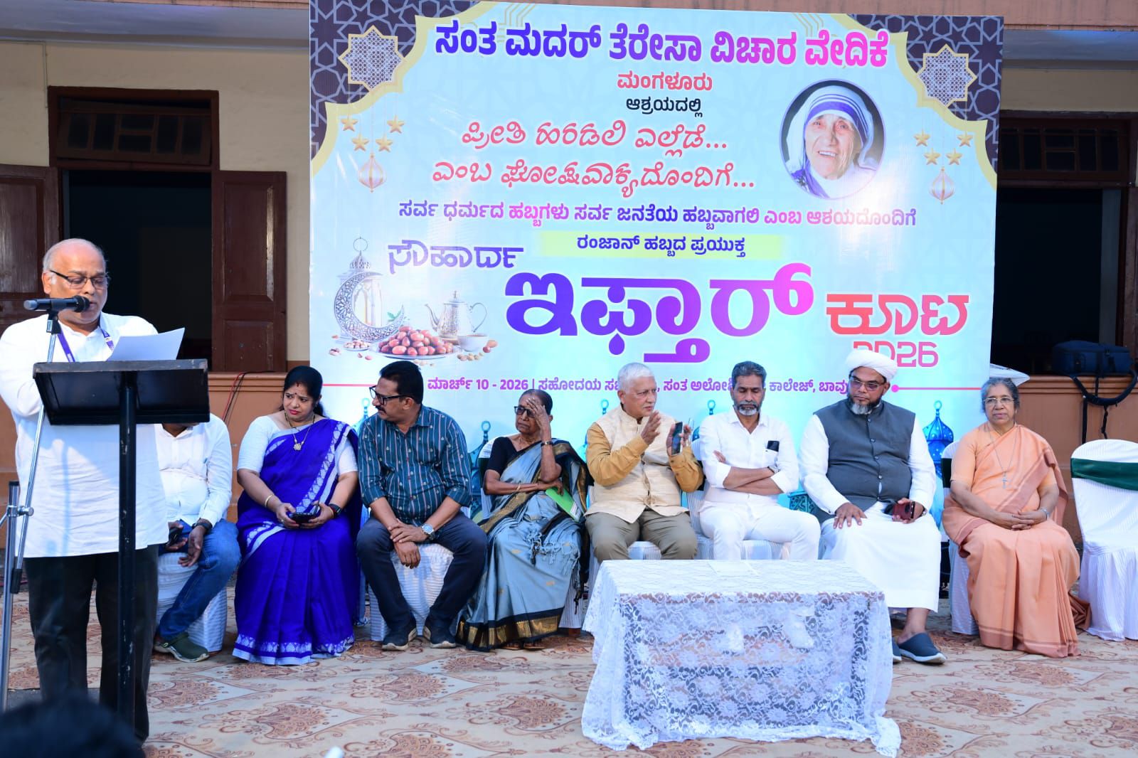 ನಗರದ ಸಂತ ಅಲೋಶಿಯಸ್ ಕಾಲೇಜಿನ ಸಹೋದಯ ಸಭಾಂಗಣದ ಆವರಣದಲ್ಲಿ ‘ಸಂತ ಮದರ್ ತೆರೆಸಾ ವಿಚಾರ ವೇದಿಕೆ’ ವತಿಯಿಂದ ಹಮ್ಮಿಕೊಳ್ಳಲಾಗಿದ್ದ ‘ಸೌಹಾರ್ದ ಇಫ್ತಾರ್ ಕೂಟ’ದಲ್ಲಿ ಮುಖ್ಯ ಅತಿಥಿಯಾಗಿ ಅವರು ಸಂದೇಶ ನೀಡಿದರು. ದ್ವೇಷ ಮತ್ತು ಕೋಪದ ಸಂದರ್ಭಗಳಲ್ಲಿ ಪ್ರೀತಿ ಮೂಡುವಂತಾಗಬೇಕು. ನಮ್ಮವರೊಂದಿಗೆ ಪ್ರೀತಿಯಿಂದ ವರ್ತಿಸಿದಾಗ ಮಾತ್ರ ಅನ್ಯರನ್ನೂ ಪ್ರೀತಿಸಲು ಸಾಧ್ಯ ಎಂದು ಅವರು ಪ್ರತಿಪಾದಿಸಿದರು.