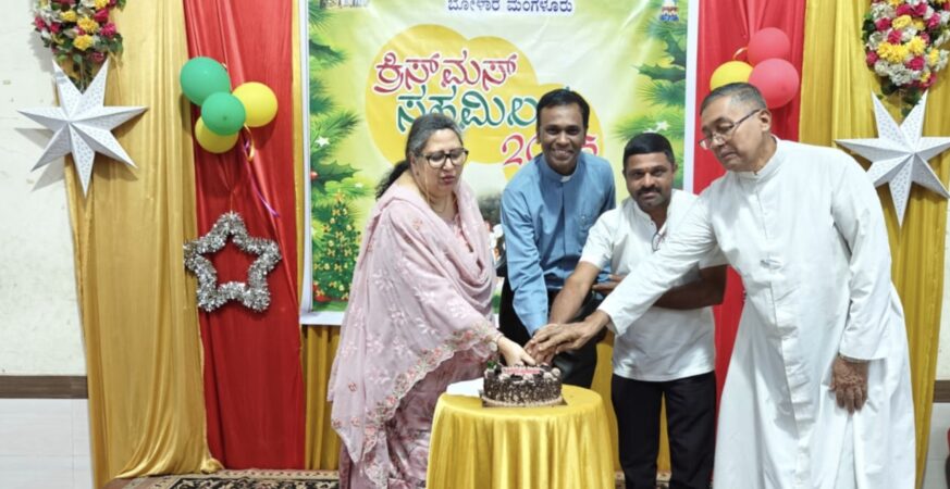 ಮಂಗಳೂರು : ರೊಜಾರಿಯೊ ಕ್ಯಾಥೆಡ್ರಲ್ ಚರ್ಚ್ ಬೋಳಾರ ವತಿಯಿಂದ ಕ್ರಿಸ್ಮಸ್ ಹಬ್ಬದ ಅಂಗವಾಗಿ ಕ್ರಿಸ್ಮಸ್ ಸೌಹಾರ್ದ ಸಹಮಿಲನವನ್ನು ಆತ್ಮೀಯತೆ ಮತ್ತು ಸೌಹಾರ್ದತೆಯೊಂದಿಗೆ ಆಯೋಜಿಸಲಾಯಿತು .ಕಾರ್ಯಕ್ರಮವನ್ನು ರೊಜಾರಿಯೊ ಕ್ಯಾಥೆಡ್ರಲ್ ನ ಧರ್ಮಗುರುಗಳಾದ ಫಾ. ವಲೇರಿಯನ್ ಡಿಸೋಜಾ . ಅತಿಥಿಗಳಾದ ಕಾಂತಿ ಚರ್ಚ್ ನ ಪಾಸ್ಟಾರ್ ಗೇಬ್ರಿಯಲ್ ರೋನಿತ್, ಮಹಾಲಿಂಗೇಶ್ವರ ದೇವಸ್ಥಾನದ ಟ್ರಸ್ಟಿ ಮಹೇಶ್ ರಾವ್ ಅವರೊಂದಿಗೆ ಕೇಕ್ ಕತ್ತರಿಸುವ ಮೂಲಕ ಉದ್ಘಾಟಿಸಿದರು. ಈ ಕಾರ್ಯಕ್ರಮದ ಮುಖ್ಯ ಉದ್ದೇಶವು ಎಲ್ಲಾ ಧರ್ಮಗಳ ನಡುವೆ ಸಹಬಾಳ್ವೆ, ಪ್ರೀತಿ ಮತ್ತು ಶಾಂತಿಯ ಸಂದೇಶವನ್ನು […]