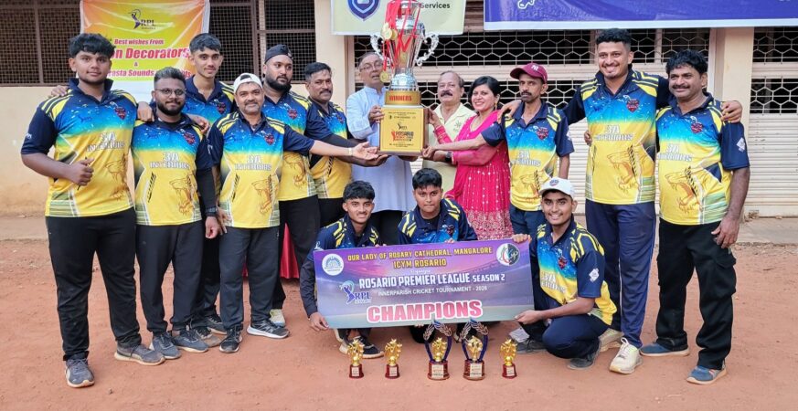 ಮಂಗಳೂರು: ರೊಸಾರಿಯೊ ಶಾಲಾ ಮೈದಾನದಲ್ಲಿ ನಡೆದ ರೊಸಾರಿಯೊ ಪ್ರೀಮಿಯರ್ ಲೀಗ್ (RPL) ಸೀಸನ್ 2ರ ಫೈನಲ್ ಪಂದ್ಯದಲ್ಲಿ ರೊಸಾರಿಯೊ ಸೂಪರ್ ಕಿಂಗ್ಸ್ ತಂಡವು ಗ್ಲೋರಿ ಹಂಟರ್ಸ್ ರೊಸಾರಿಯೊ ತಂಡವನ್ನು ಸೋಲಿಸಿ ಚಾಂಪಿಯನ್ ಆಗಿ ಹೊರಹೊಮ್ಮಿದೆ. ಬ್ಯಾಟಿಂಗ್ ಮತ್ತು ಬೌಲಿಂಗ್‌ನಲ್ಲಿ ಅದ್ಭುತ ಪ್ರದರ್ಶನ ನೀಡಿದ ರೊಸಾರಿಯೊ ಸೂಪರ್ ಕಿಂಗ್ಸ್ ತಂಡವು ಇಡೀ ಪಂದ್ಯಾವಳಿಯಲ್ಲಿ ಅಜೇಯವಾಗಿ ಉಳಿದು ಟ್ರೋಫಿಯನ್ನು ಎತ್ತಿಹಿಡಿಯಿತು. ವಿಜೇತ ತಂಡಕ್ಕೆ 25,000 ರೂ. ನಗದು ಮತ್ತು ಆಕರ್ಷಕ ಟ್ರೋಫಿ ನೀಡಲಾಯಿತು. ರನ್ನರ್ ಅಪ್ ಪಡೆದ ಗ್ಲೋರಿ ಹಂಟರ್ಸ್ […]