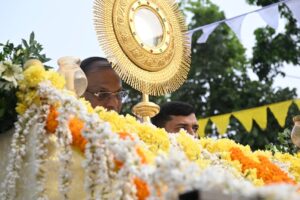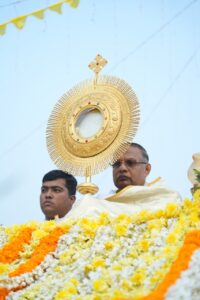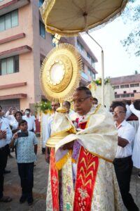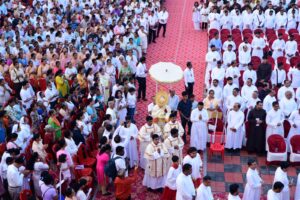 ಮಂಗಳೂರು: ಯೇಸು ಕ್ರಿಸ್ತರ ದೈವದರ್ಶನ ಮಹೋತ್ಸವದ (ಎಪಿಫನಿ) ಪ್ರಯುಕ್ತ ಮಂಗಳೂರು ಧರ್ಮಕ್ಷೇತ್ರದ ವತಿಯಿಂದ ಭಾನುವಾರ ವಾರ್ಷಿಕ ಭವ್ಯ ಪರಮ ಪವಿತ್ರ ಪ್ರಸಾದದ ಮೆರವಣಿಗೆಯು ಶ್ರದ್ಧಾ ಭಕ್ತಿಯಿಂದ ನಡೆಯಿತು. ಮಿಲಾಗ್ರಿಸ್ ಚರ್ಚ್ನಿಂದ ಆರಂಭಗೊಂಡು ರೊಸಾರಿಯೊ ಕೆಥೆಡ್ರಲ್ ವರೆಗೆ ಮೆರವಣಿಗೆಯು ನಡೆಯಿತು.