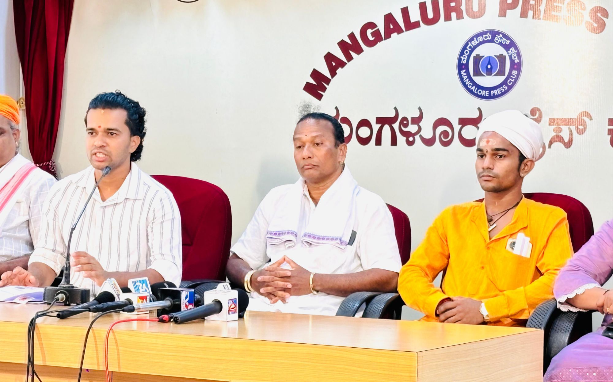 ದೈವನರ್ತಕ ಸುಶಾಂತ್ ಬಂಗೇರ ಮಾತಾಡಿ, ”ನನ್ನನ್ನು ಕ್ರೈಸ್ತ ಧರ್ಮಕ್ಕೆ ಸೇರಿದವನು ಎಂದು ಅವಮಾನ ಮಾಡಿದ್ದಾರೆ. ಅವರು ಪತ್ರಿಕಾಗೋಷ್ಠಿ ನಡೆಸಿ ಬಹಿರಂಗವಾಗಿ ಕ್ಷಮೆ ಯಾಚಿಸಬೇಕು. ಅವರ ವೈಯಕ್ತಿಕ ಲಾಭಕ್ಕಾಗಿ ನನ್ನ ಭವಿಷ್ಯ ಹಾಳು ಮಾಡುತ್ತಿದ್ದಾರೆ. ಅವರಿಂದ ನನಗೆ ಈ ಪರಿಸ್ಥಿತಿ ಒದಗಿಬಂದಿದೆ. ದೈವನರ್ತನ ಮಾಡಲು ಕಷ್ಟವಾಗುತ್ತಿದೆ“ ಎಂದರು.