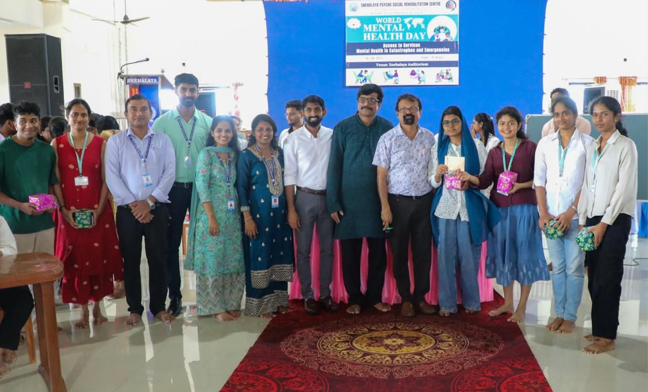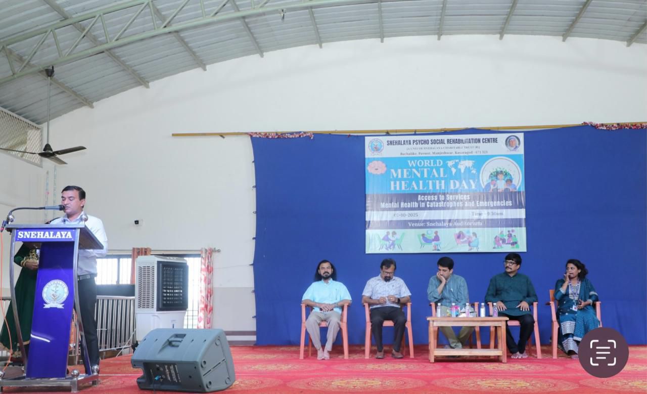 ಮಂಗಳೂರು ಅಕ್ಟೋಬರ್ 7: ಸ್ನೇಹಾಲಯ ಚಾರಿಟೇಬಲ್ ಟ್ರಸ್ಟ್(ರಿ ), ಮಂಜೇಶ್ವರ, ಸ್ನೇಹಾಲಯ ಸಭಾಂಗಣದಲ್ಲಿ “ಸೇವೆಗಳಿಗೆ ಪ್ರವೇಶ: ವಿಪತ್ತುಗಳು ಮತ್ತು ತುರ್ತು ಪರಿಸ್ಥಿತಿಗಳಲ್ಲಿ ಮಾನಸಿಕ ಆರೋಗ್ಯ” ಎಂಬ ಧ್ಯೇಯ ವಾಕ್ಯದೊಂದಿಗೆ ವಿವಿಧ ಸಂಸ್ಥೆಗಳ ವಿದ್ಯಾರ್ಥಿಗಳ ವಿಶೇಷ ಭಾಗವಹಿಸುವಿಕೆಯೊಂದಿಗೆ ವಿಶ್ವ ಮಾನಸಿಕ ಆರೋಗ್ಯ ದಿನ 2025 ಅನ್ನು ಆಚರಿಸಿತು.